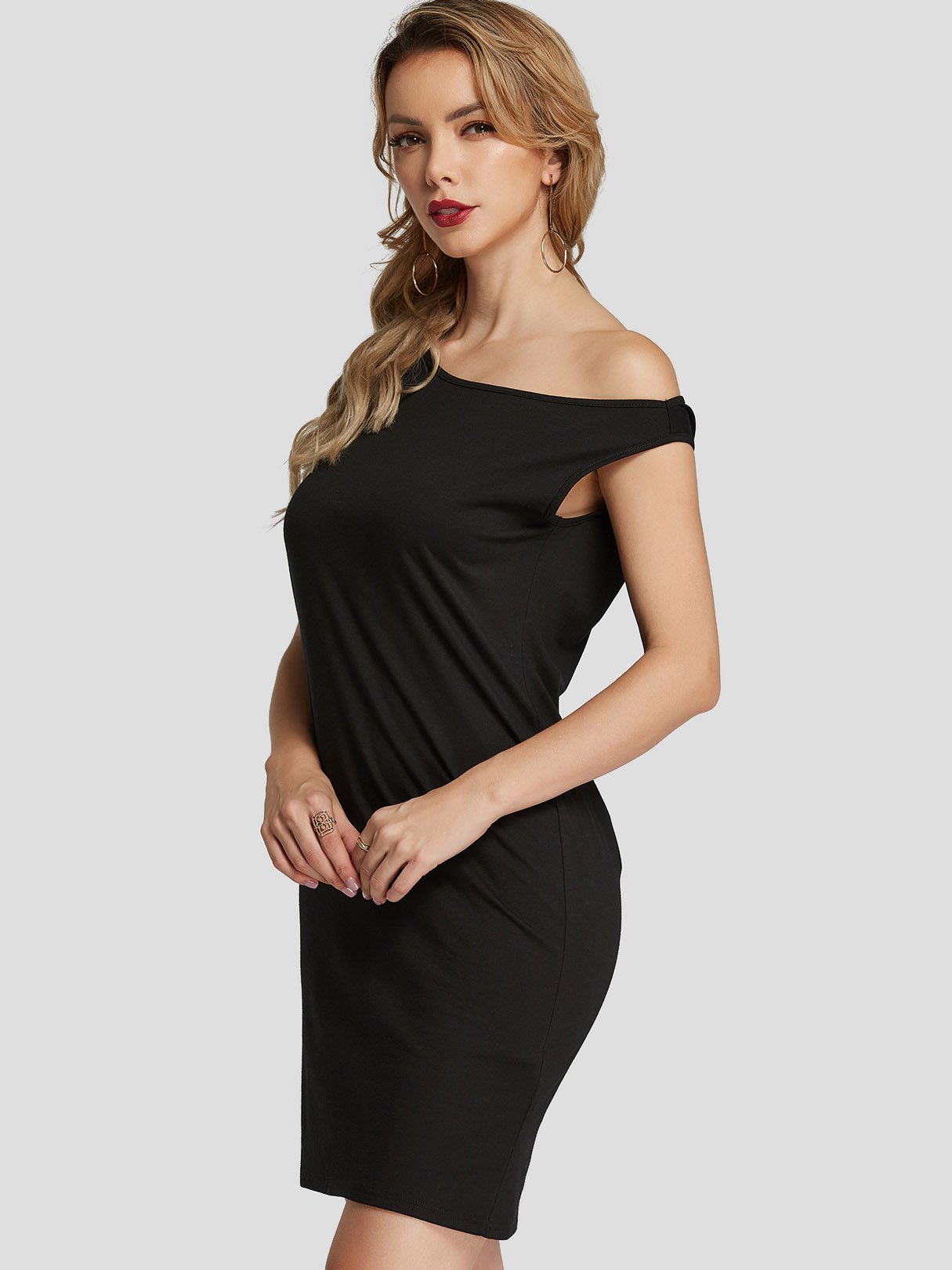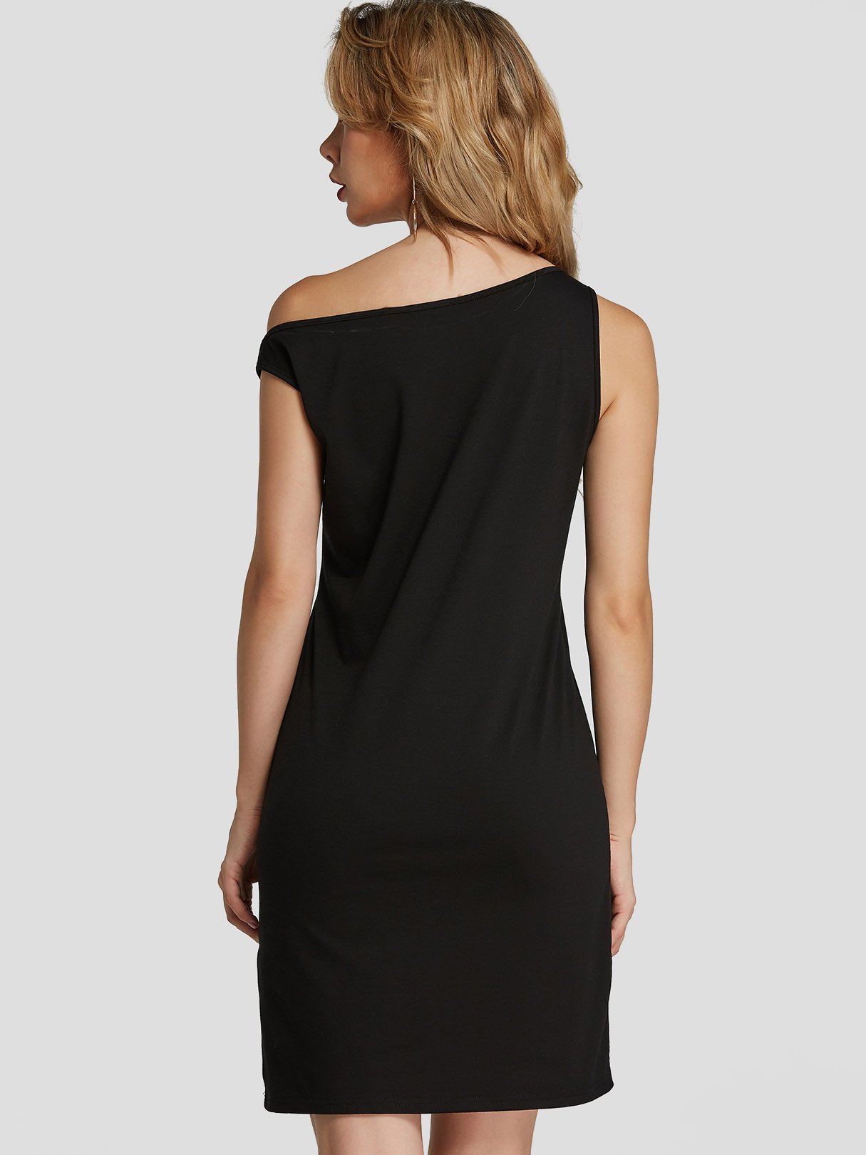 Black One Shoulder Sleeveless Plain Mini Dresses