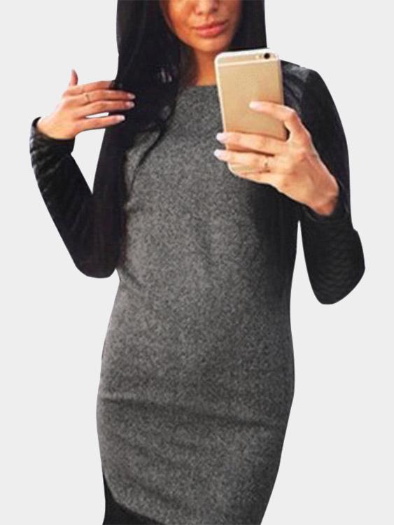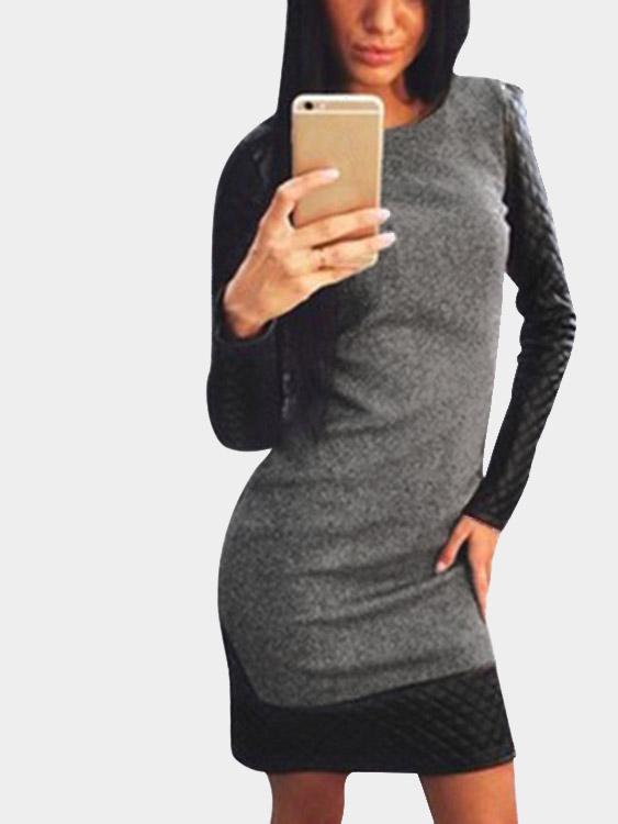 Black Round Neck Long Sleeve Mini Dress