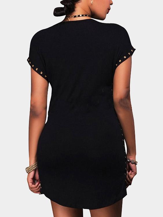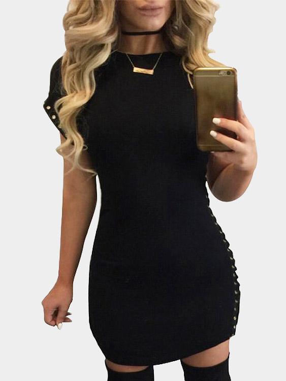 Black Round Neck Short Sleeve Lace-Up Bodycon Mini Dresses