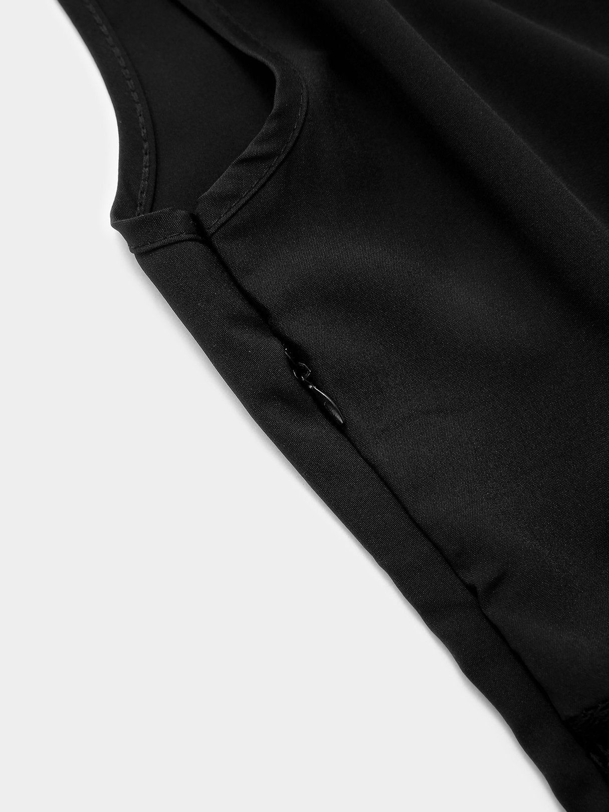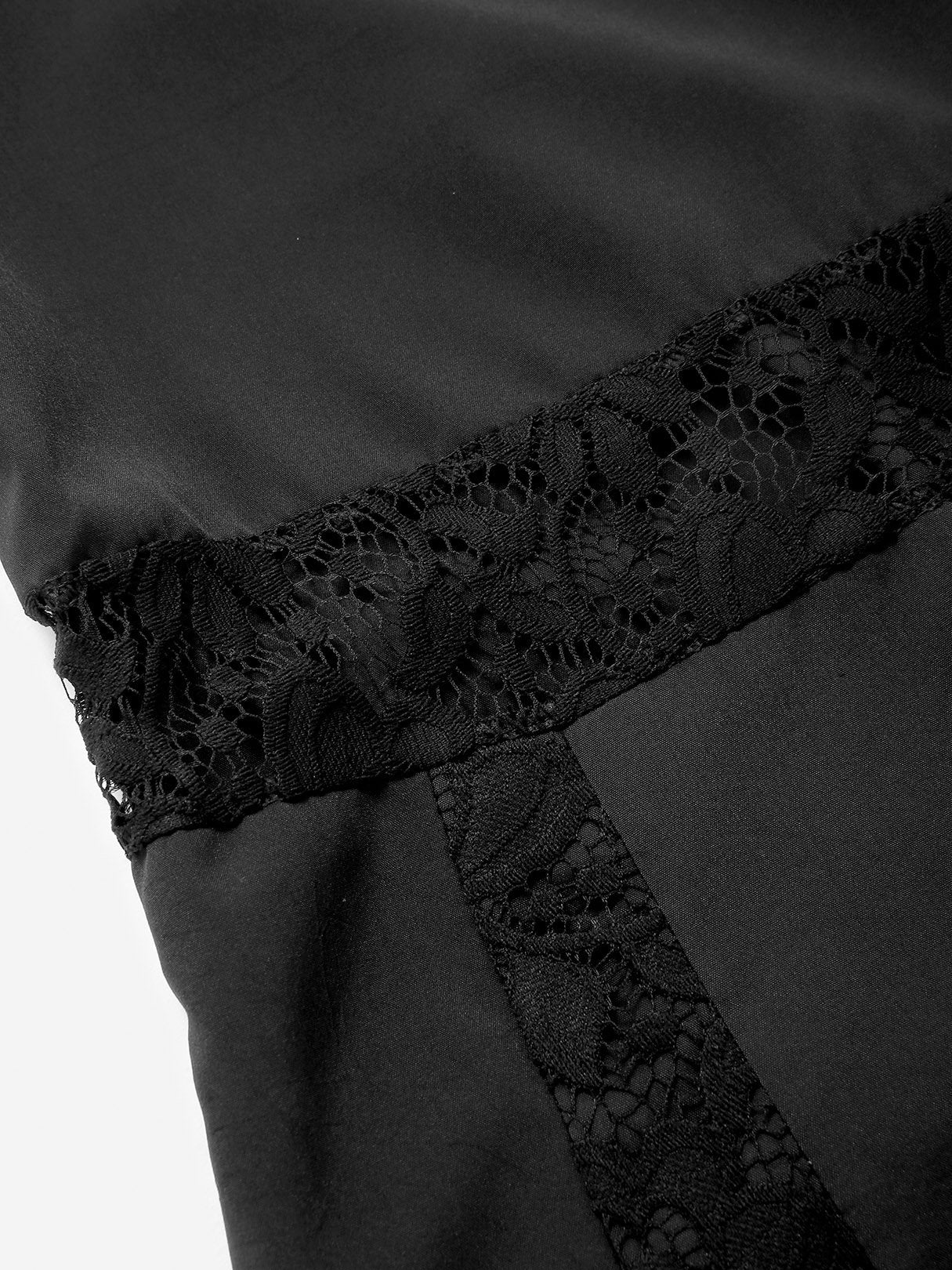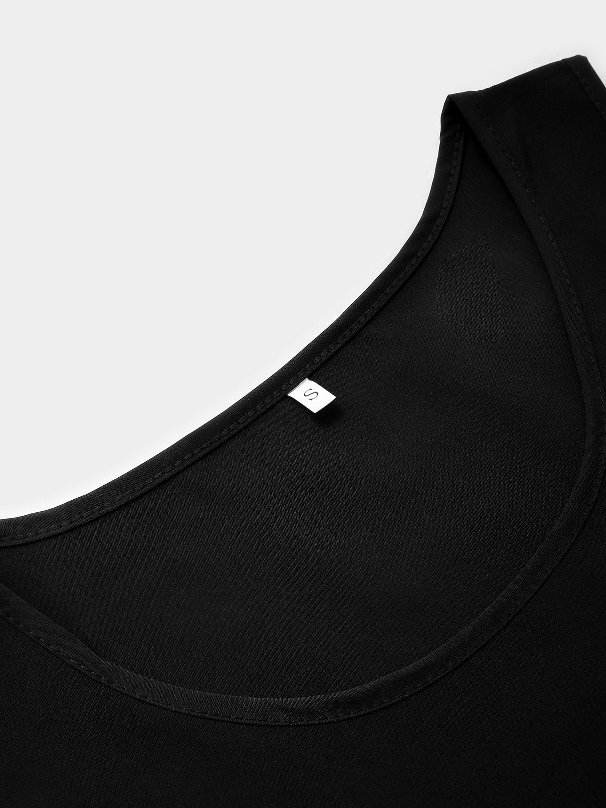 Black Round Neck Sleeveless Plain Lace Hollow Tassel Hem Mini Dress