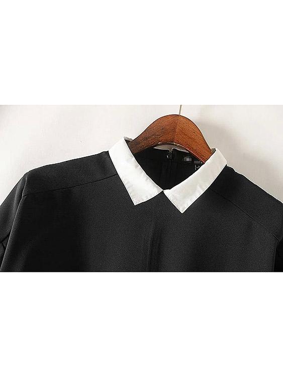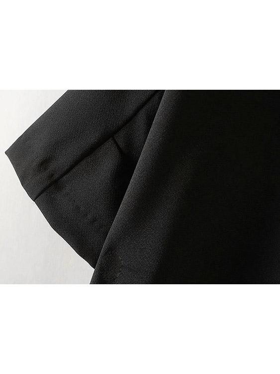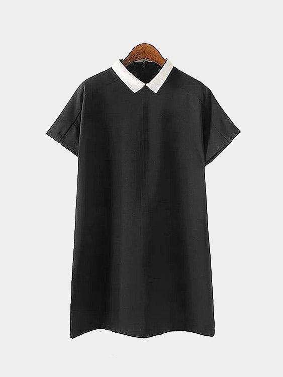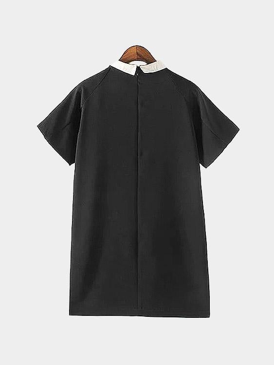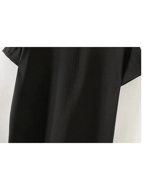 Black Short Sleeve Tiered Zip Back Curved Hem Mini Dress