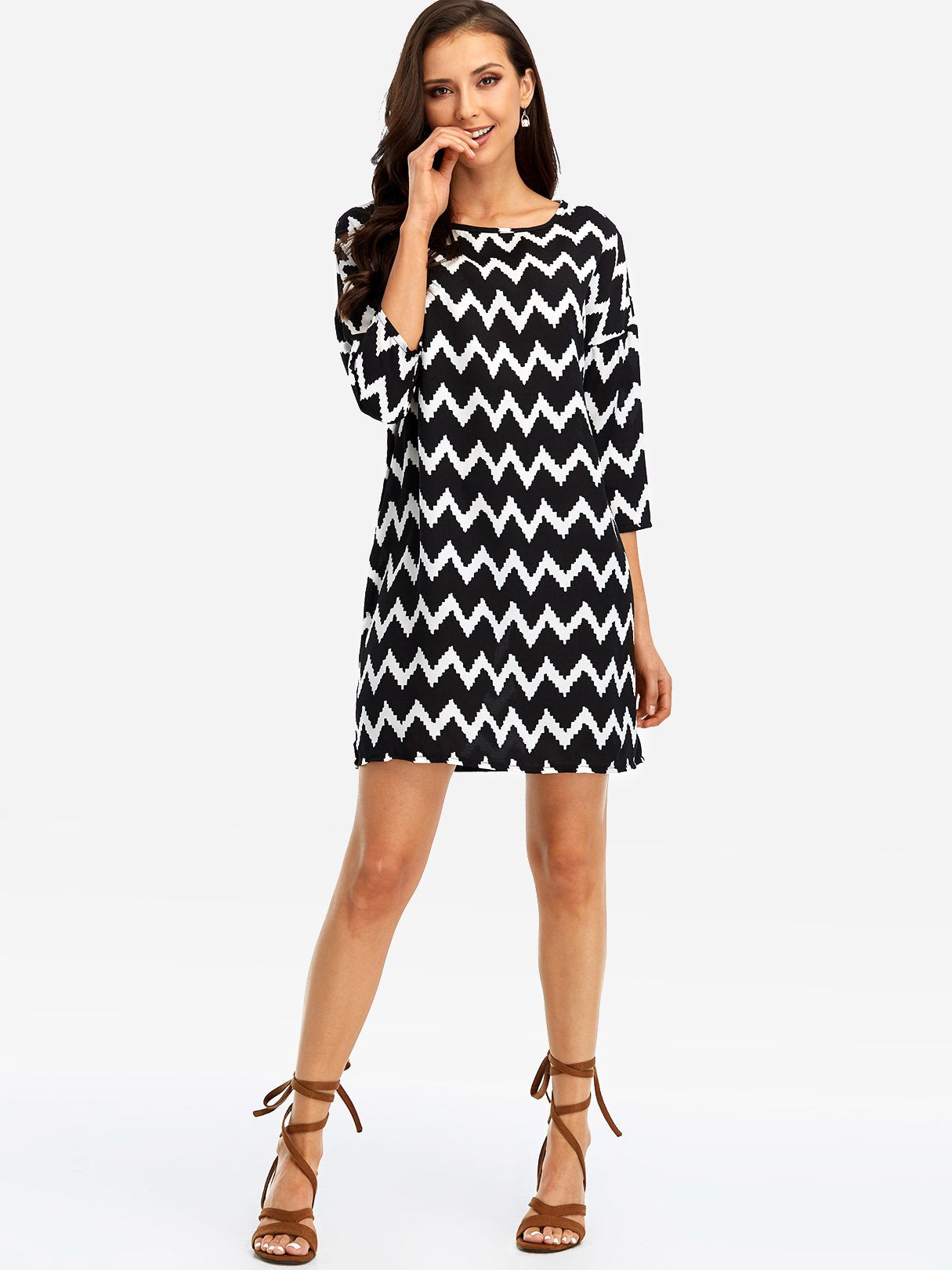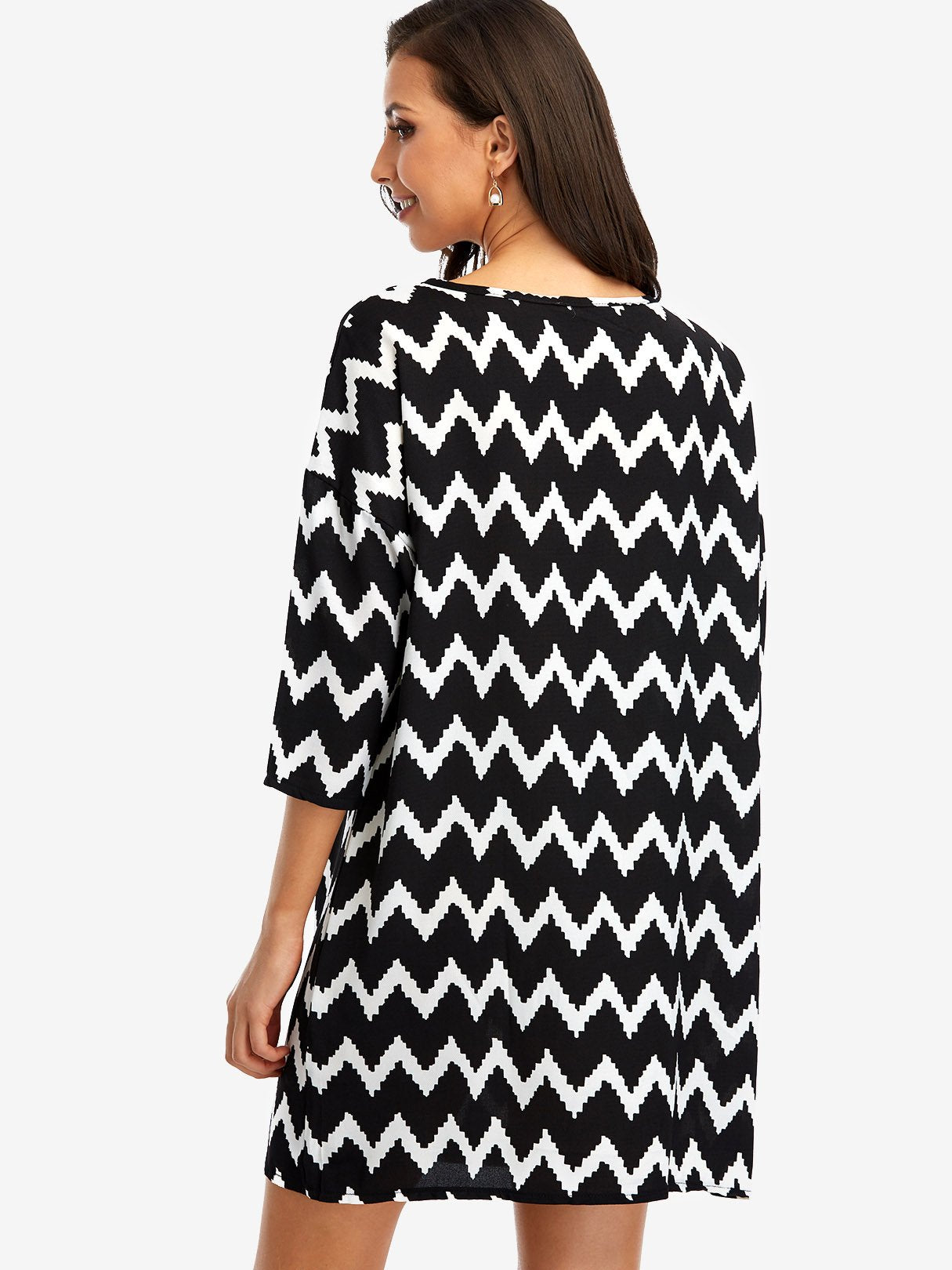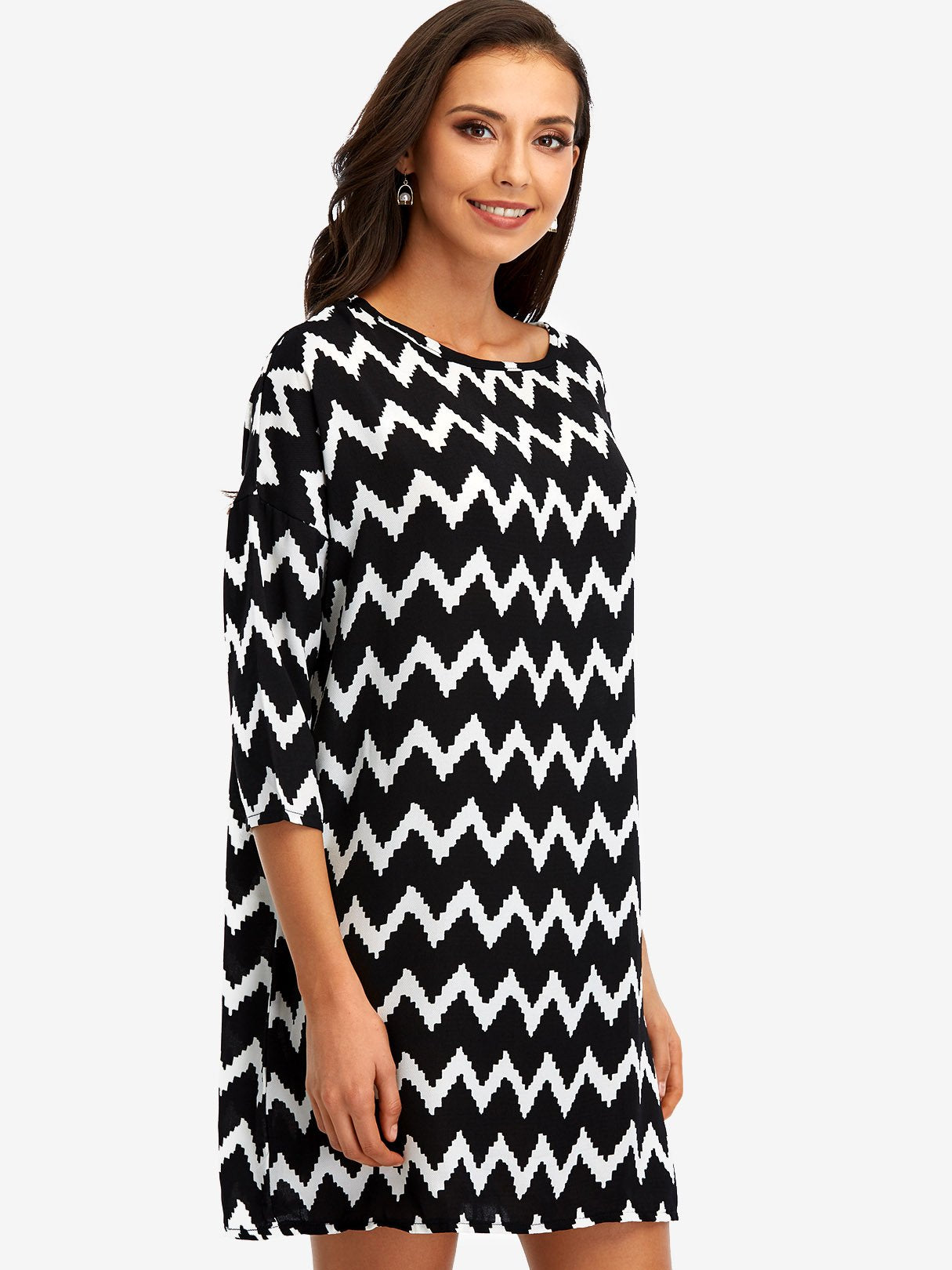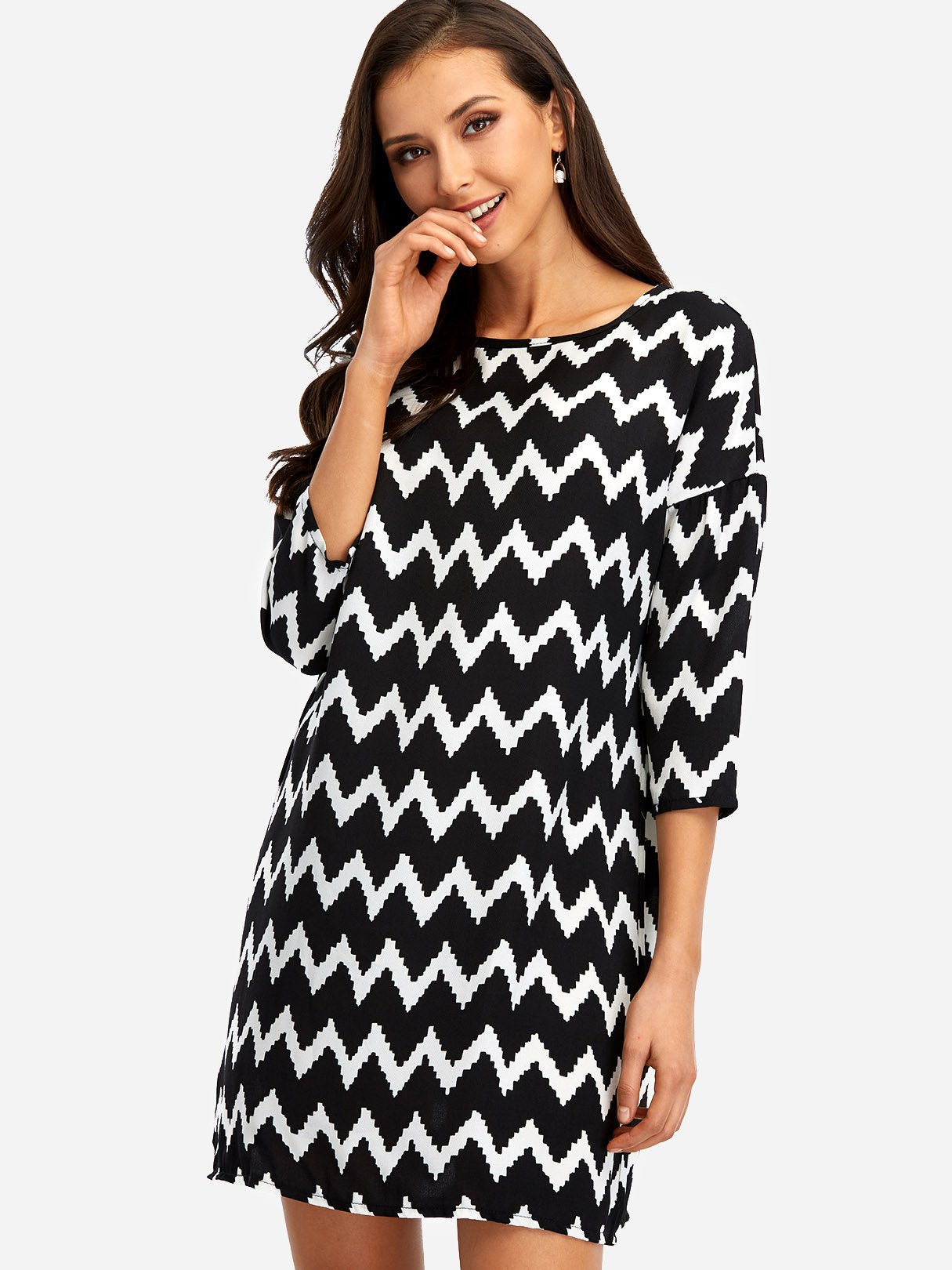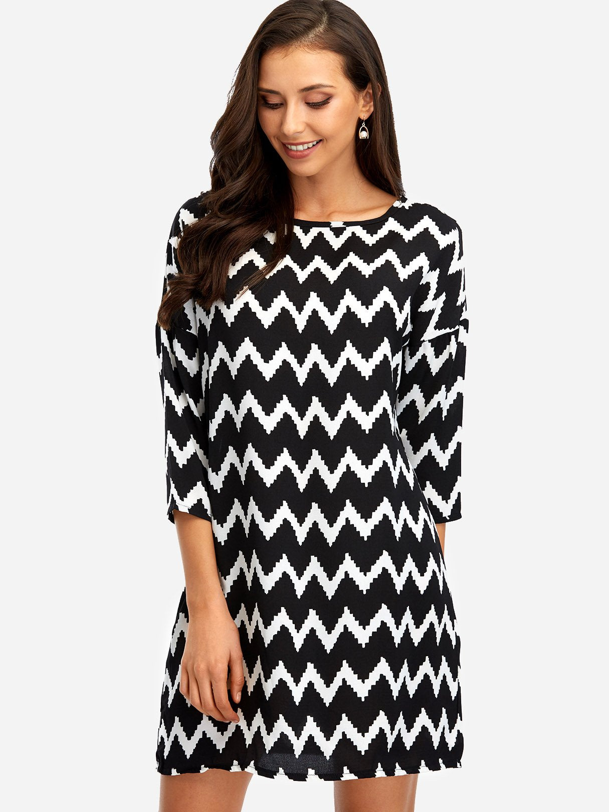 Black Square Neck Long Sleeve Wave Mini Dress