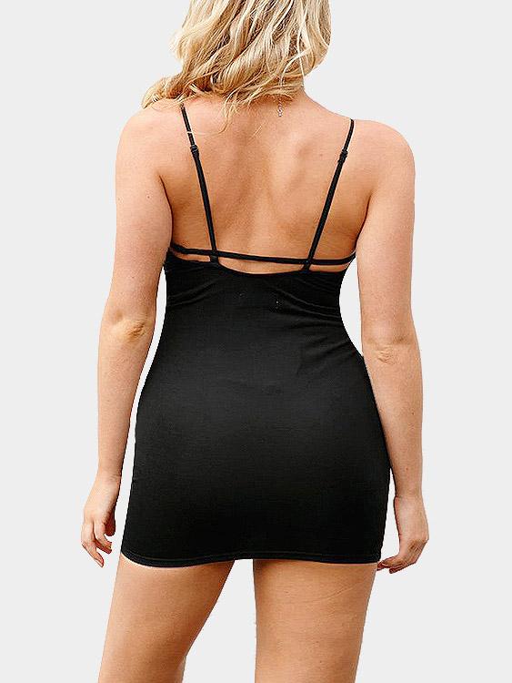 Black V-Neck Sleeveless Lace Backless Bodycon Mini Dresses