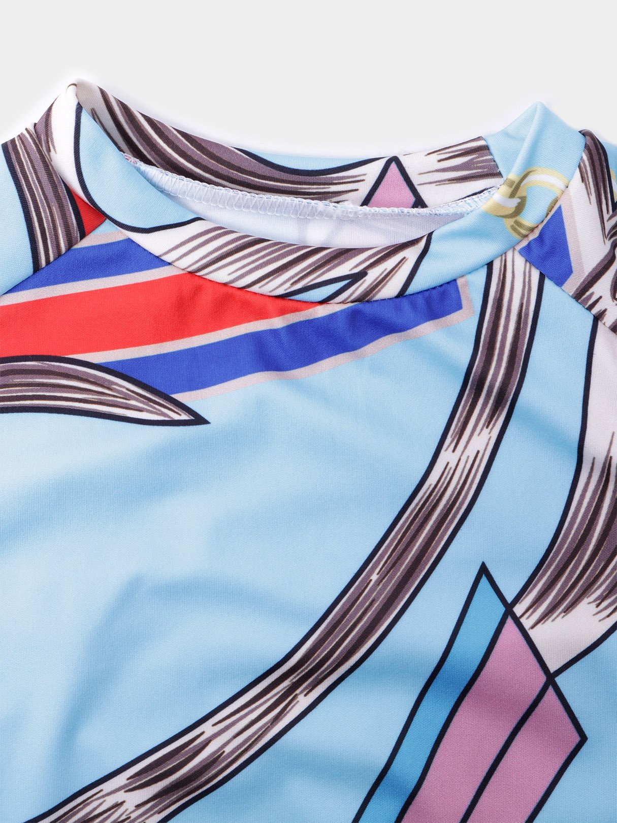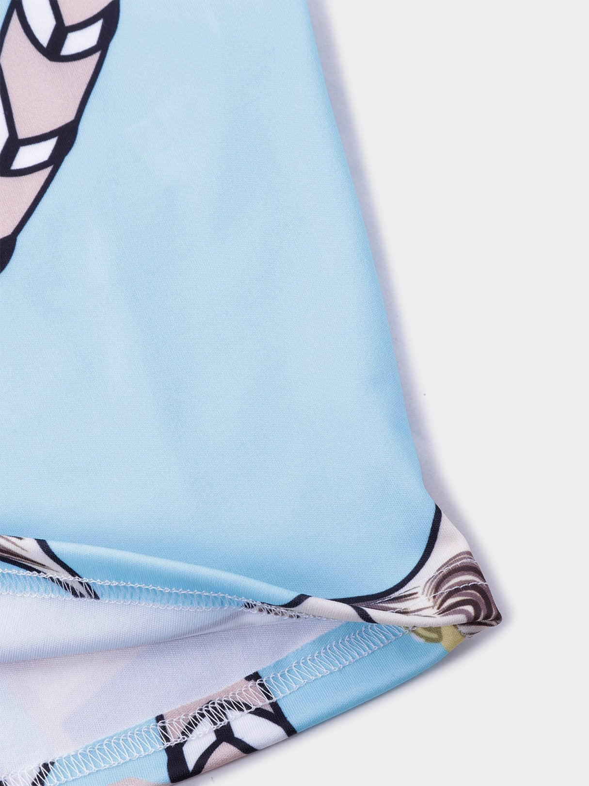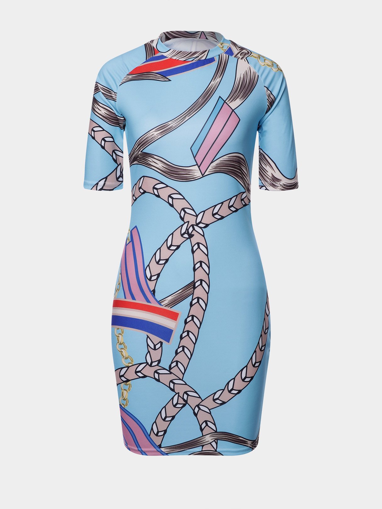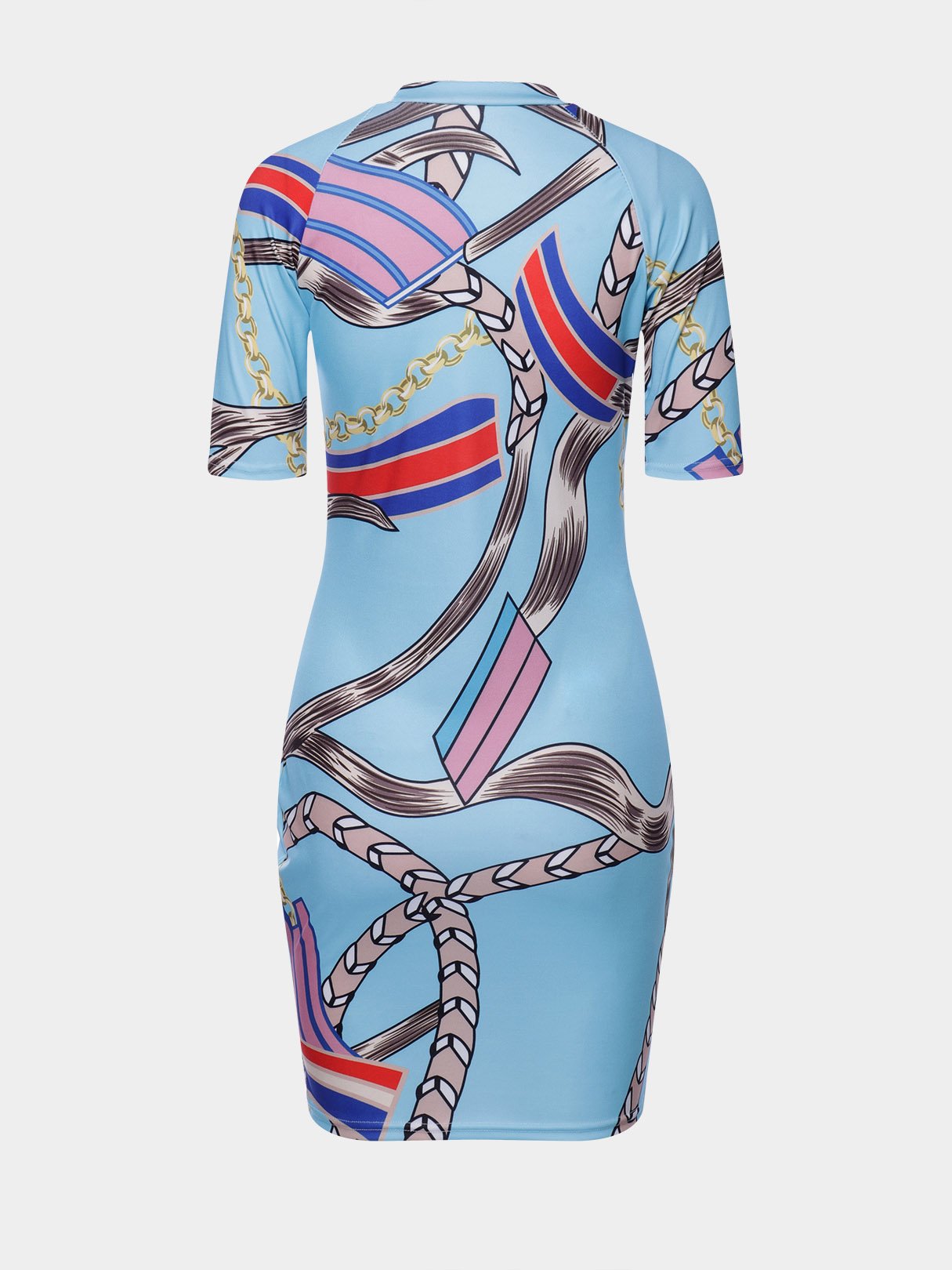 Blue Perkins Collar Half Sleeve Printed Bodycon Mini Dresses