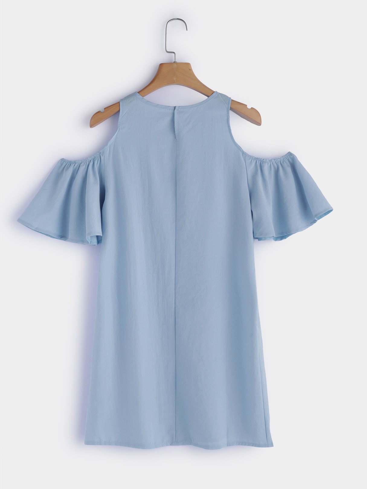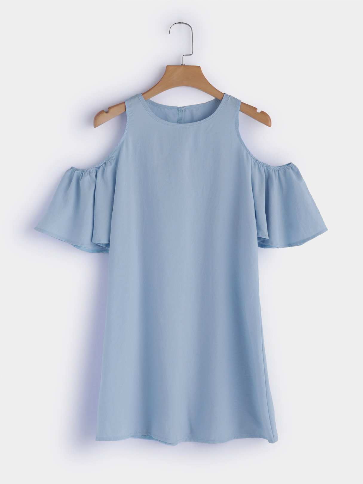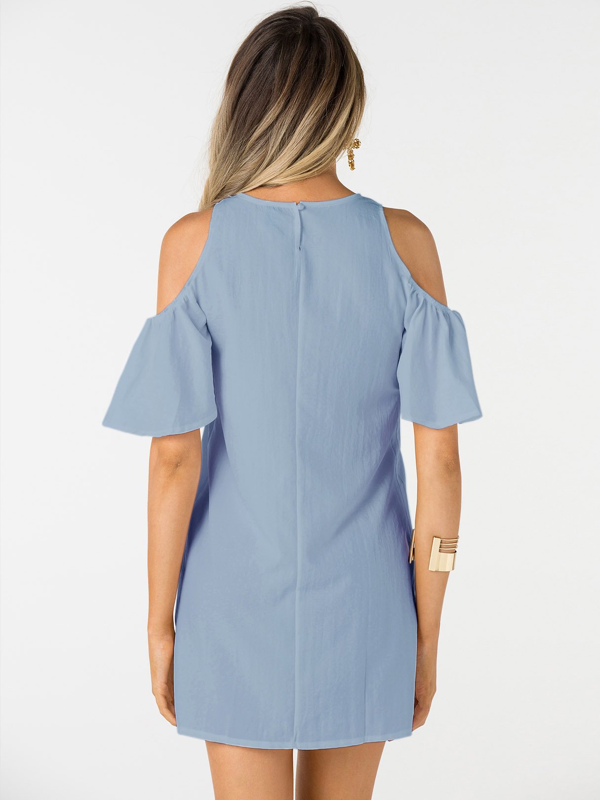 Blue Round Neck Short Sleeve Plain Zip Back Mini Dress