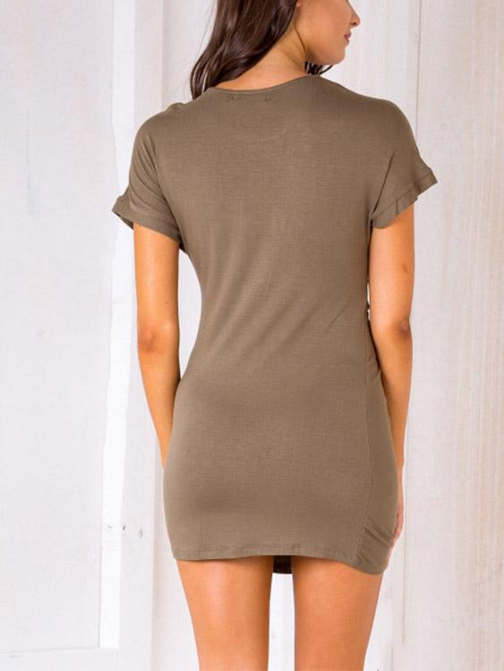 Brown Round Neck Short Sleeve Lace-Up Bodycon Mini Dresses
