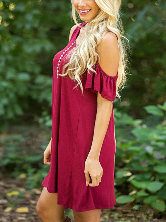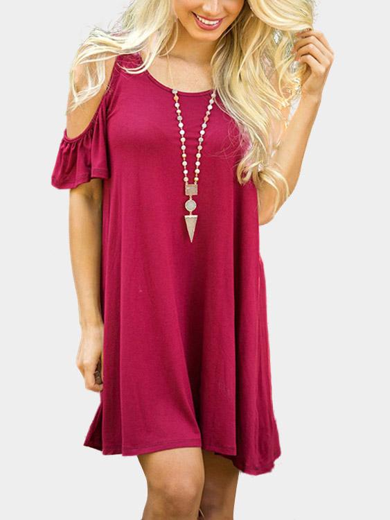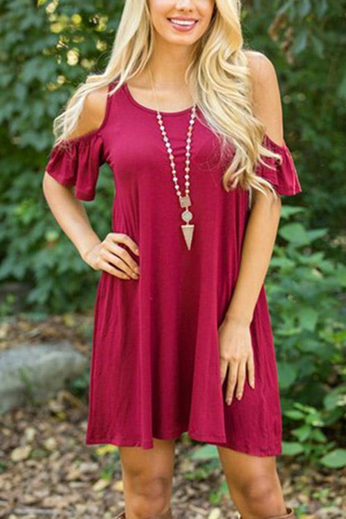 Burgundy Cold Shoulder Short Sleeve Mini Dresses