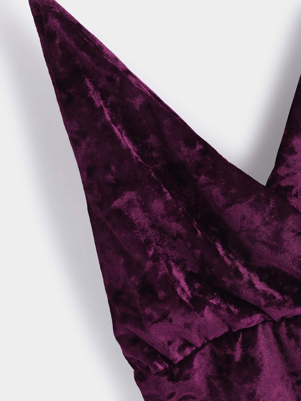 Burgundy Deep V Neck Sleeveless Plain Mini Dress