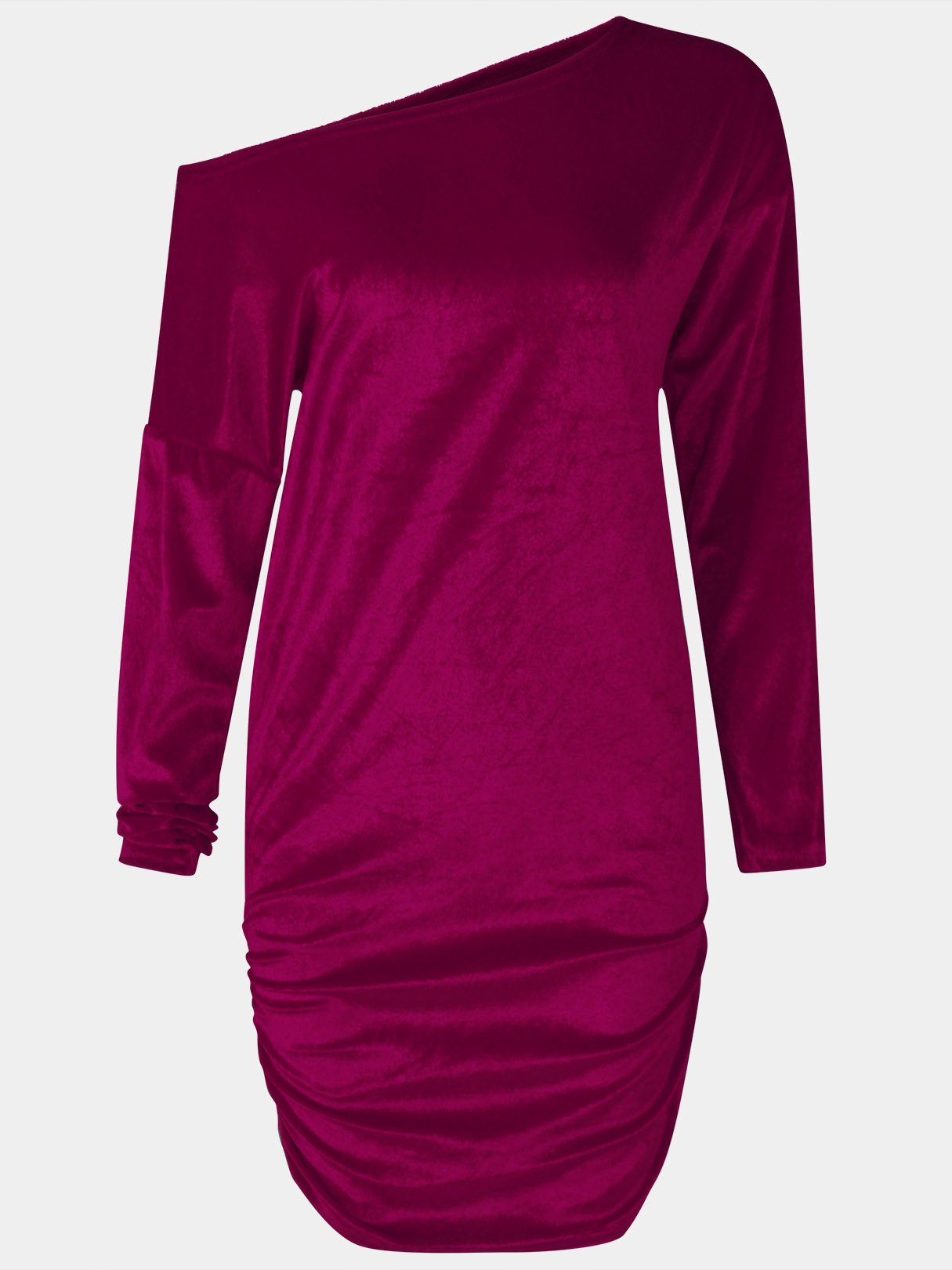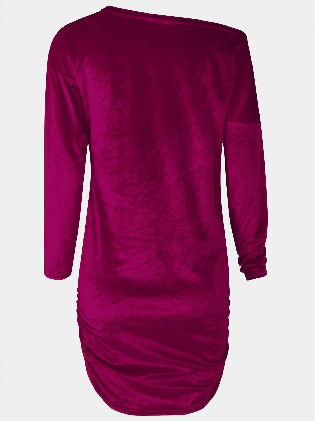 Burgundy One Shoulder Long Sleeve Mini Dress