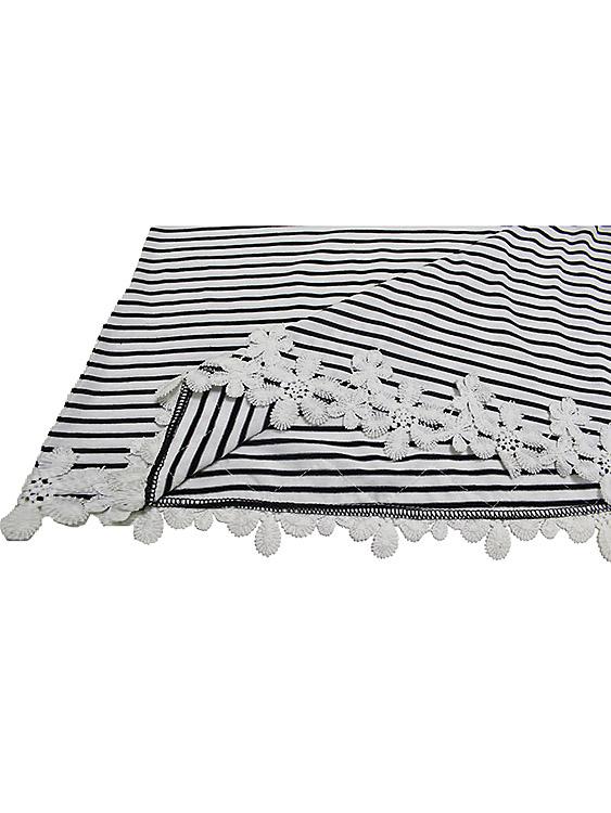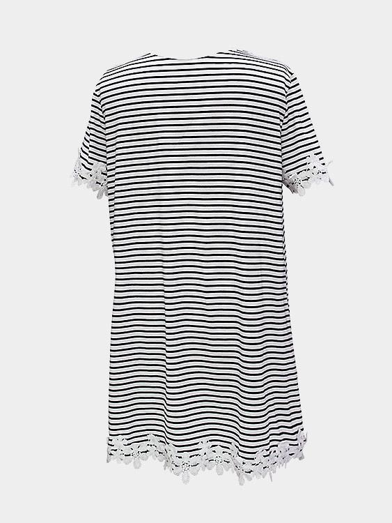 Crew Neck Short Sleeve Stripe Lace Mini Dress