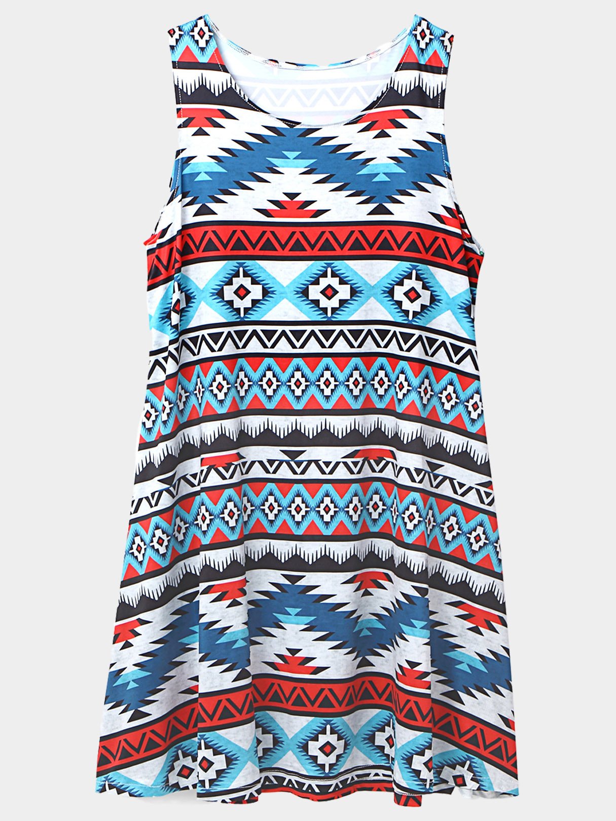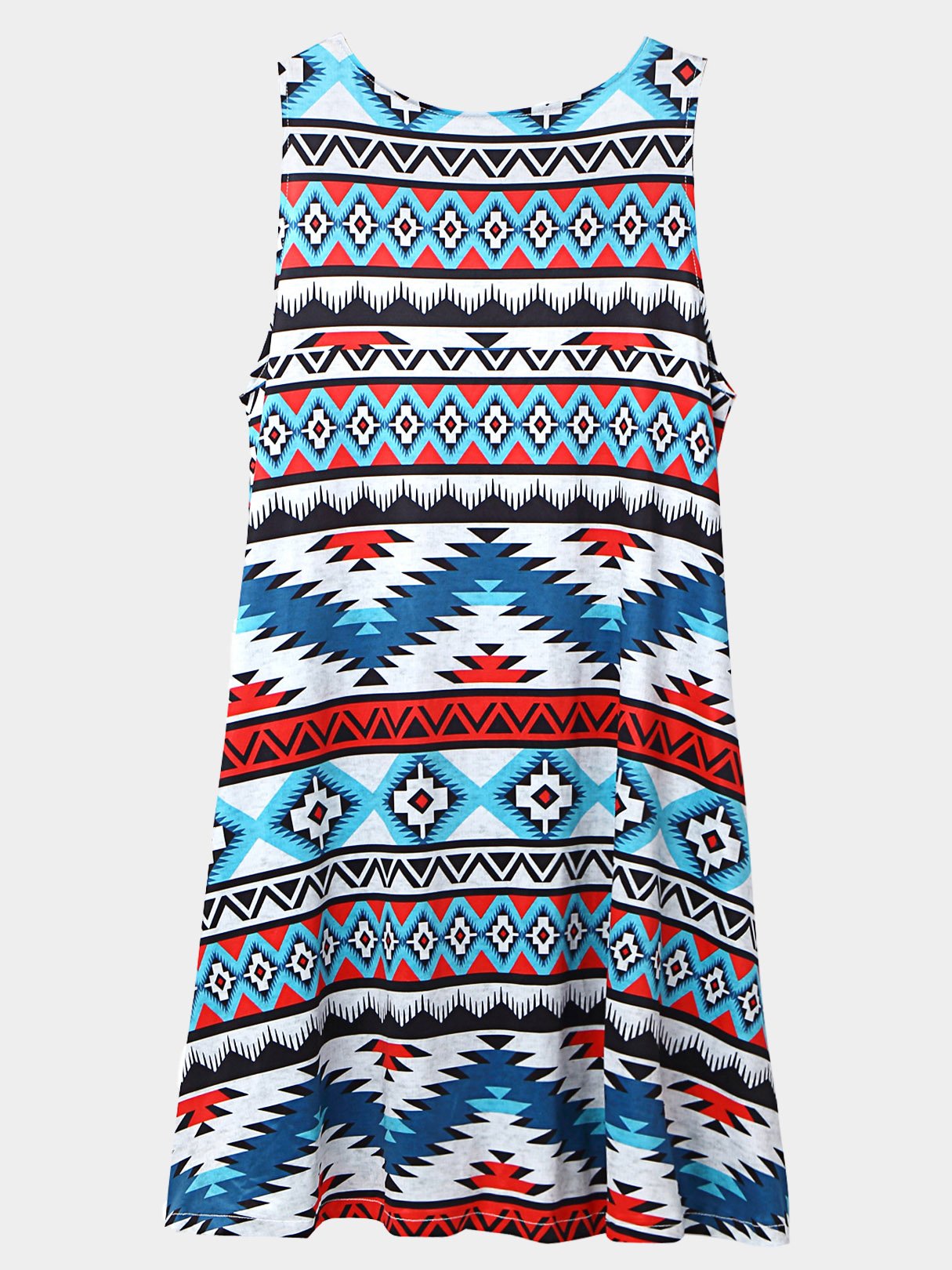Crew Neck Sleeveless Geometrical Mini Dress