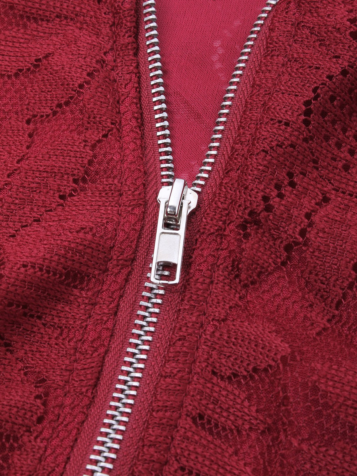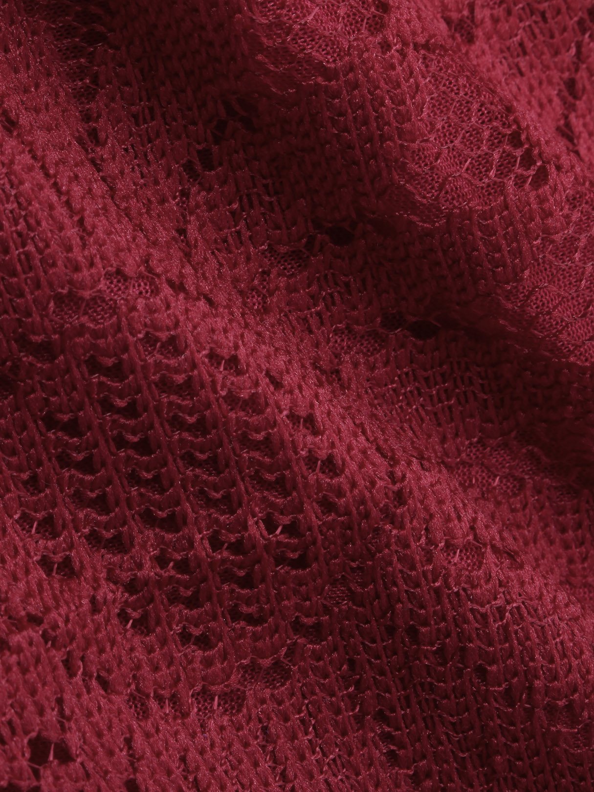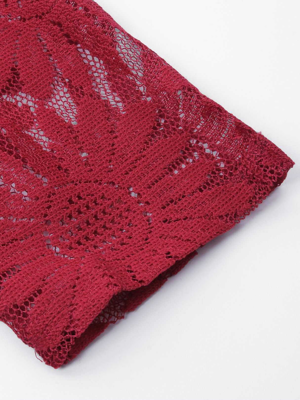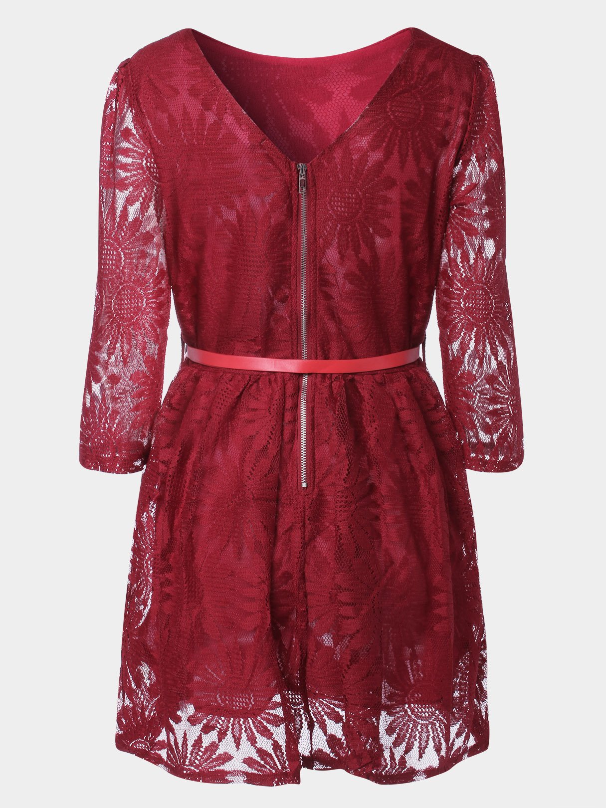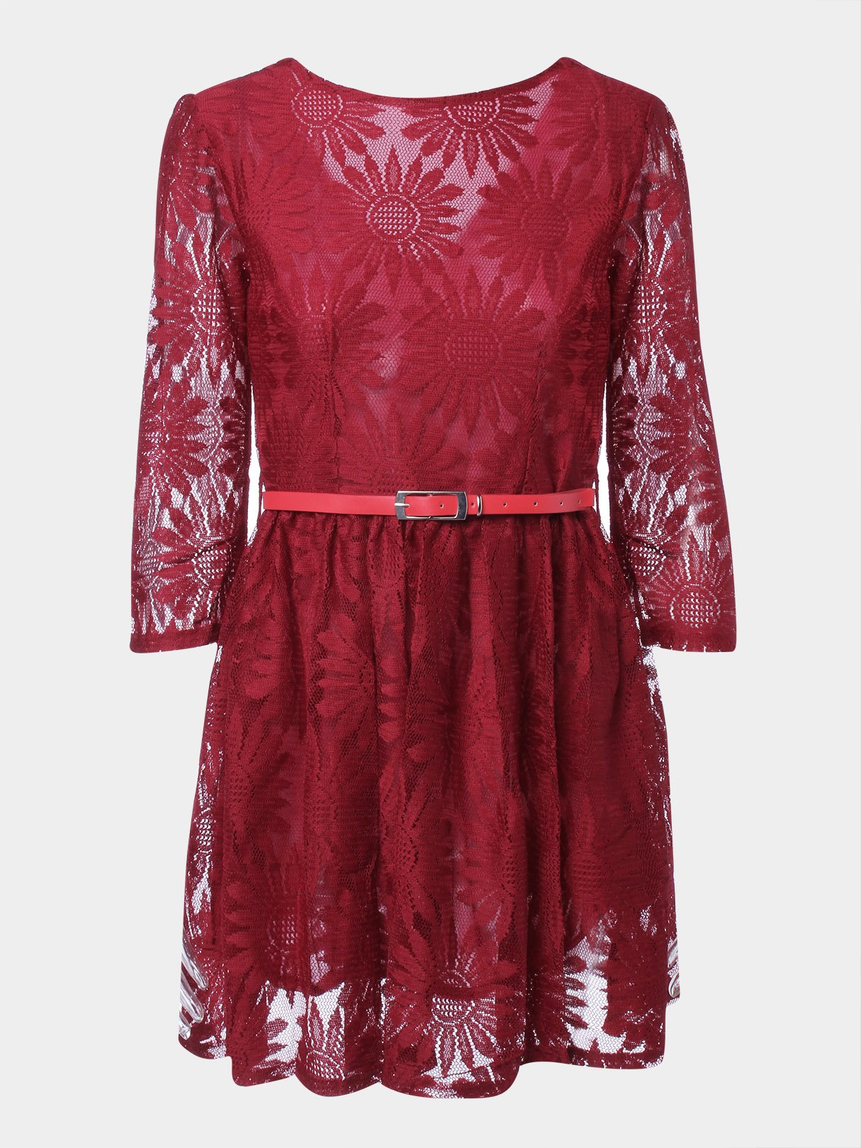 Crimson Round Neck Half Sleeve Embroidered Crochet Lace Embellished Backless Hollow Belt Mini Dress