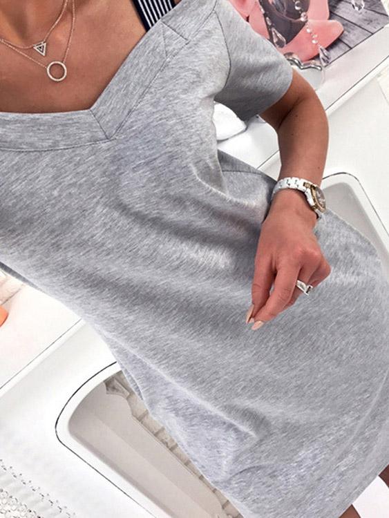 Gray V-Neck Cold Shoulder Short Sleeve Plain Mini Dresses - Gray / S is backordered and will ship as soon as it is back in stock.