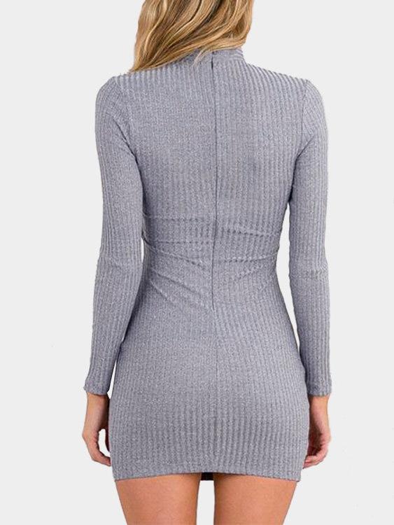 Gray V-Neck Long Sleeve Plain Mini Dress - Gray / S is backordered and will ship as soon as it is back in stock.