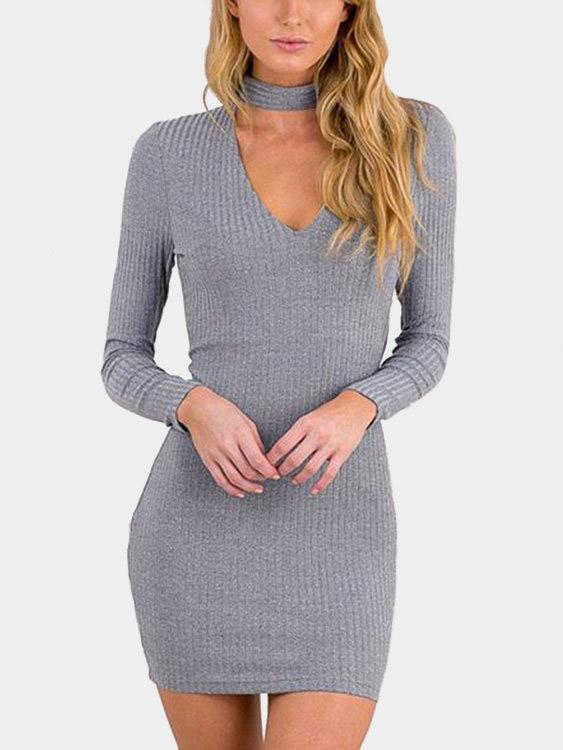 Material:Cotton,PolyesterNeckline:V-NeckSeason:AutumnSleeves:Long SleevesPattern:PlainStyle:Party StyleLength:MiniFit:Bodycon Fit,Regular Fit