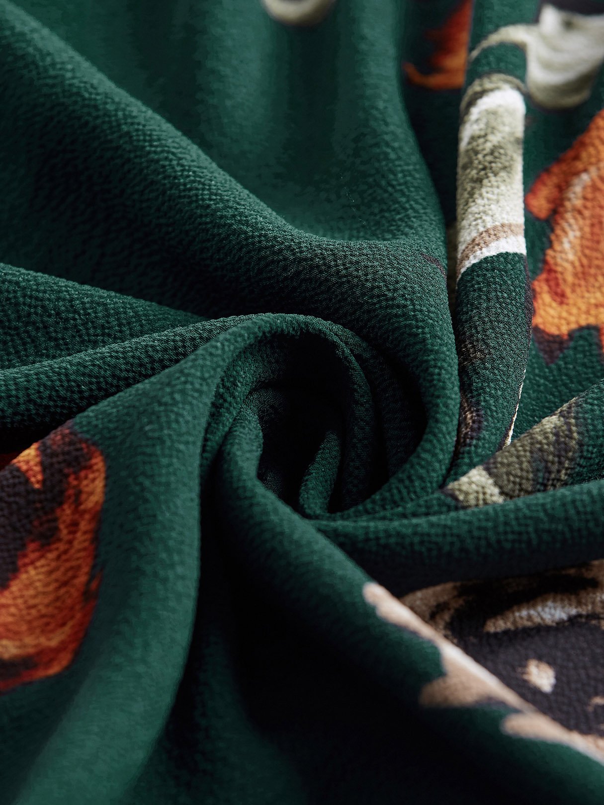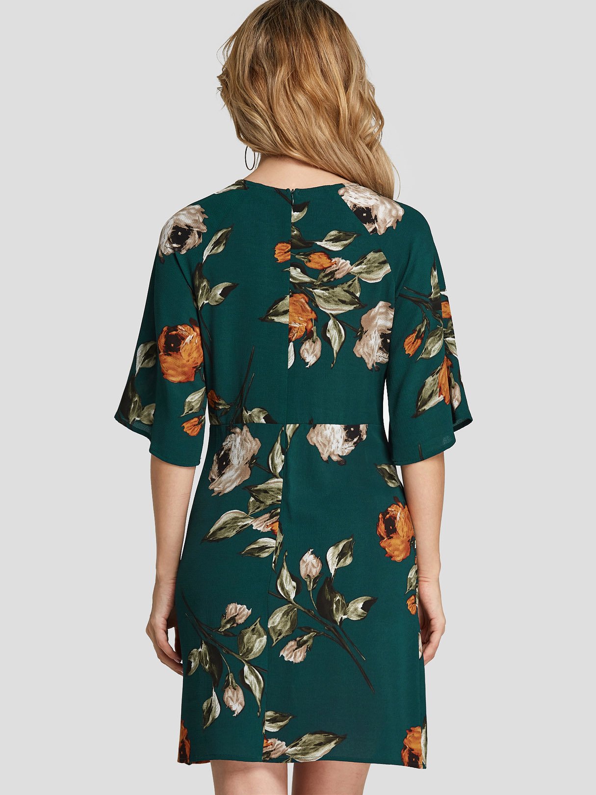 Green Round Neck Half Sleeve Floral Print Self-Tie Mini Dresses - Green / S is backordered and will ship as soon as it is back in stock.