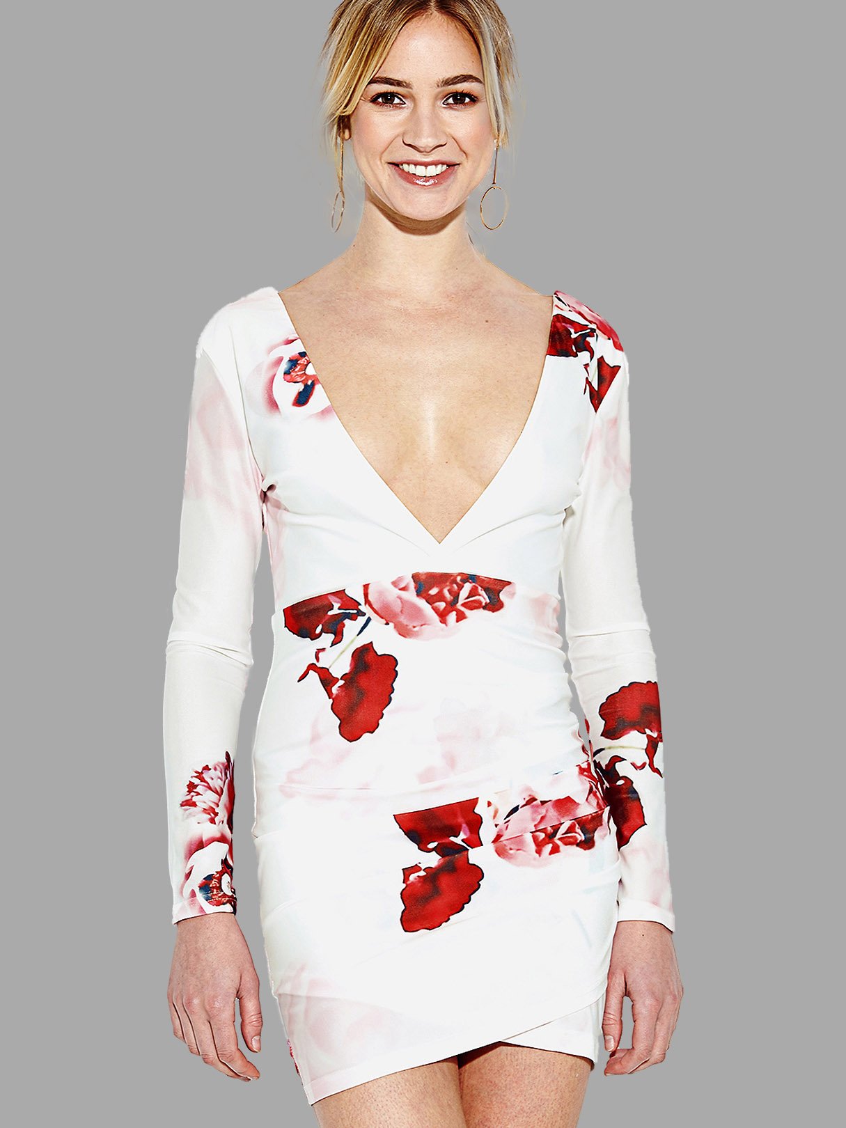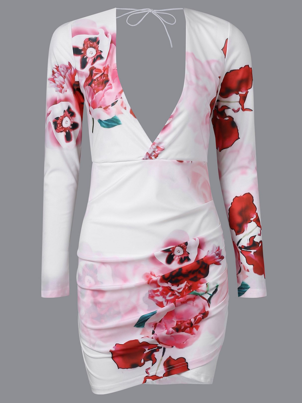 Season:Spring,Summer,AutumnSleeves:Long SleevesPattern:Floral PrintFit:Bodycon Fit