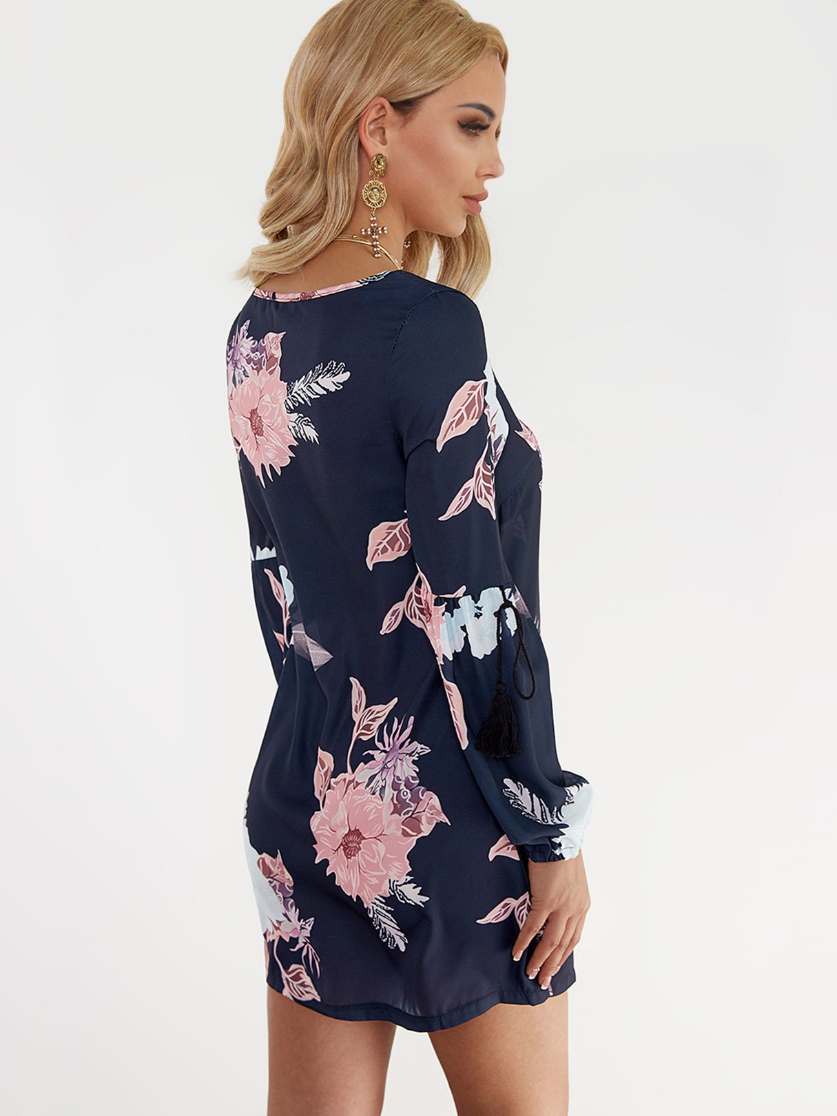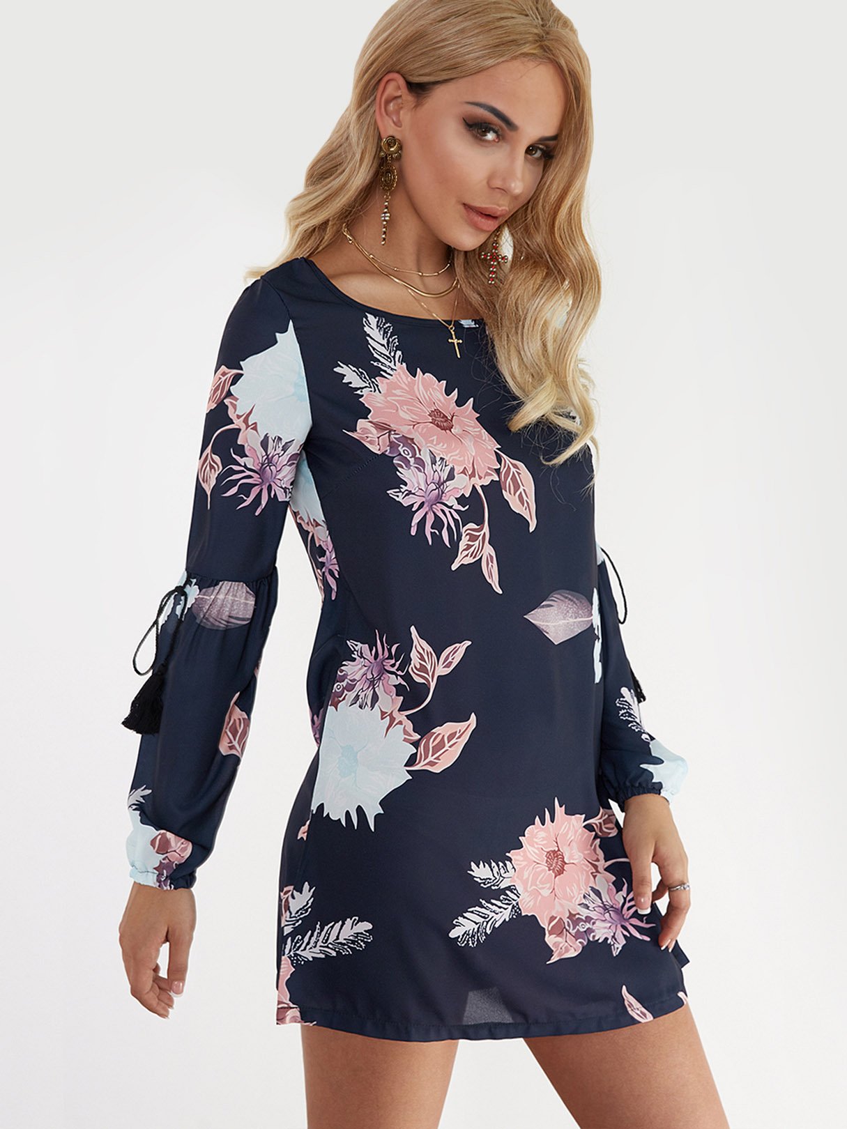 Mini Round Neck Long Sleeve Floral Print Dress - Multi / S is backordered and will ship as soon as it is back in stock.
