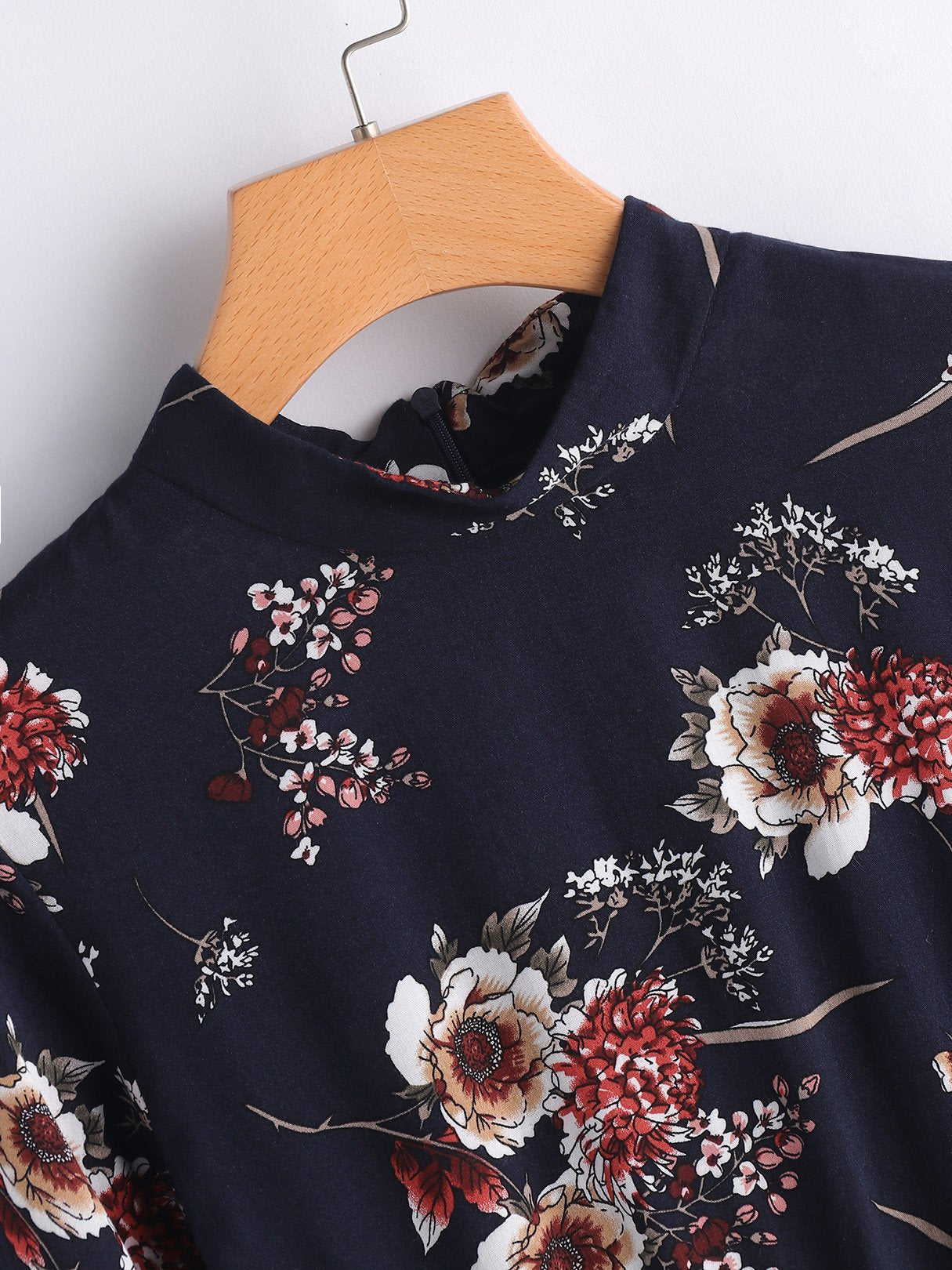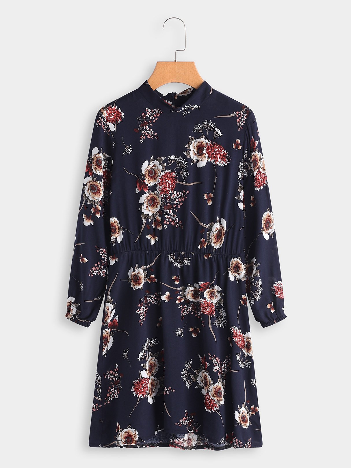 Navy Long Sleeve Floral Print Mini Dress - Navy / S is backordered and will ship as soon as it is back in stock.