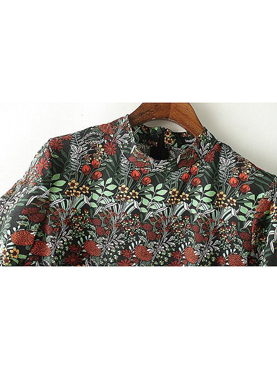 Perkins Collar Long Sleeve Floral Print Ruffle Hem Mini Dress