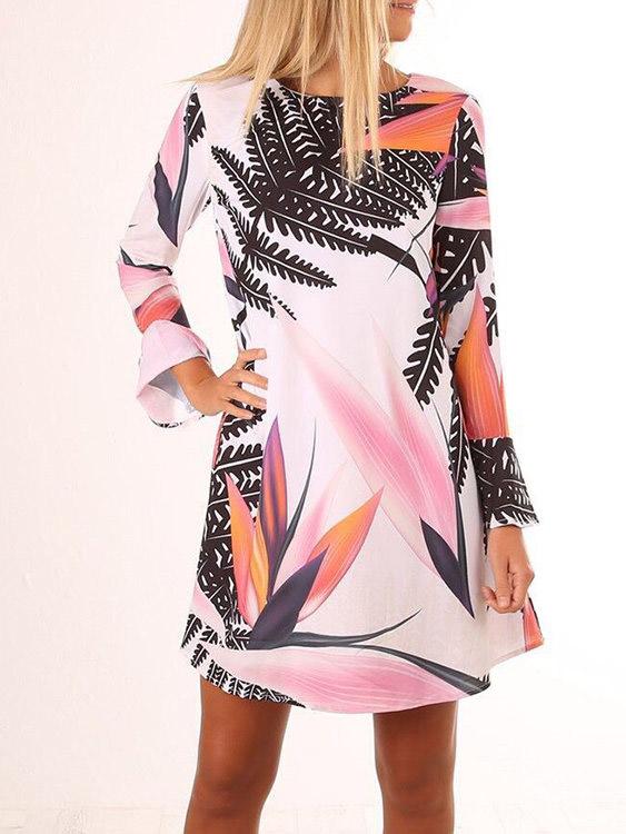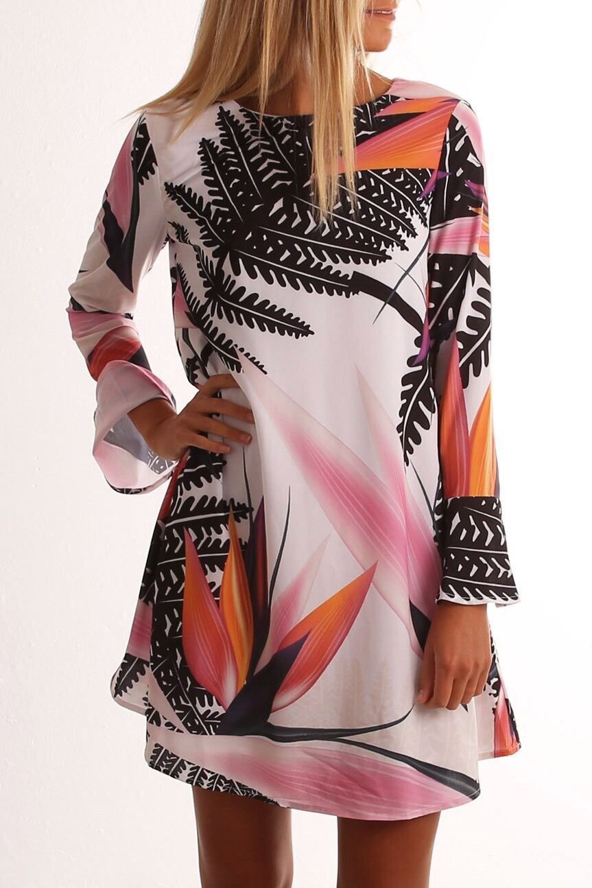 Round Neck Long Sleeve Floral Print Zip Back Mini Dress - Multi / S is backordered and will ship as soon as it is back in stock.