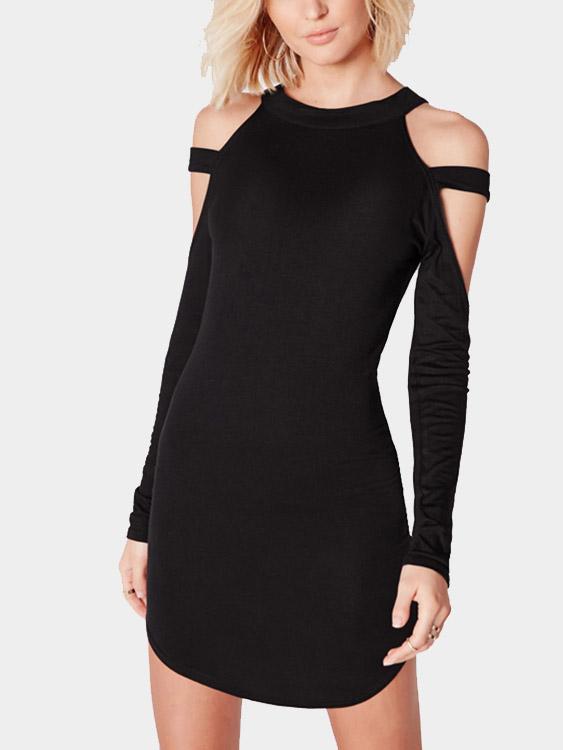 Round Neck Long Sleeves Curved Hem Mini Dresses with Cutout Details