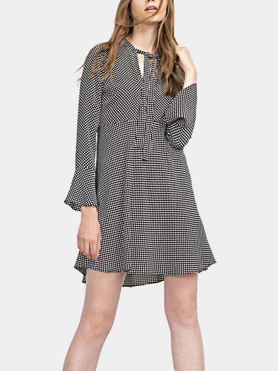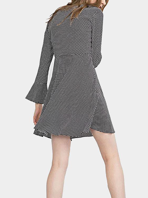 V-Neck Long Sleeve Polka Dot Mini Dress