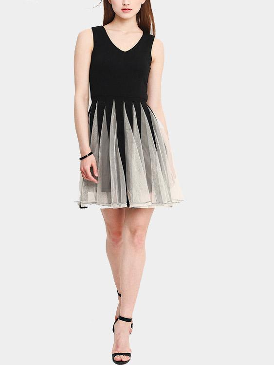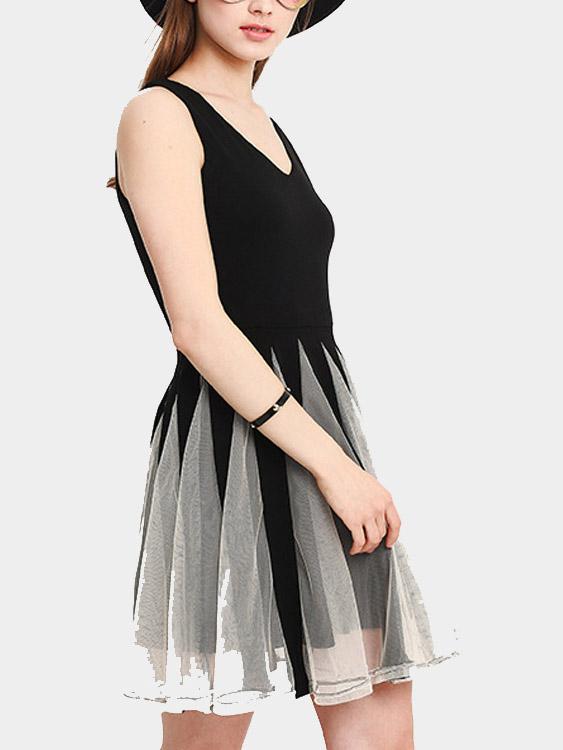 Material:PolyesterNeckline:V-NeckSeason:Spring,Summer,Autumn,WinterSleeves:SleevelessLength:Mini