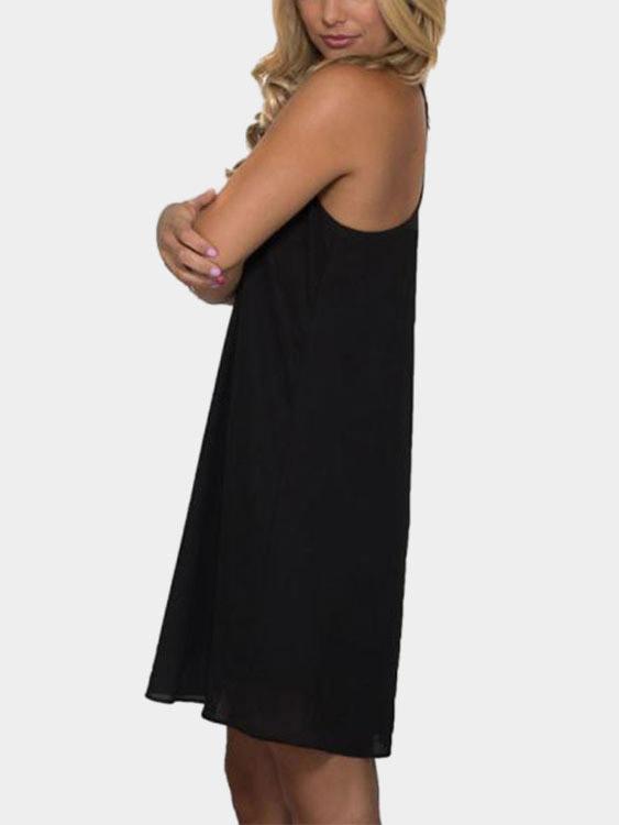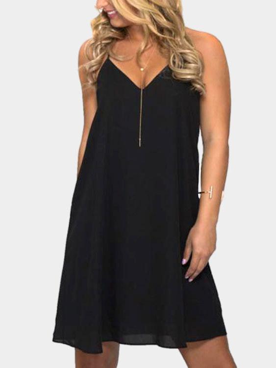 V-Neck Sleeveless Vacation Mini Dresses - Black / S is backordered and will ship as soon as it is back in stock.