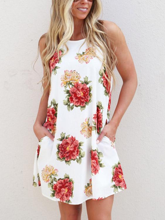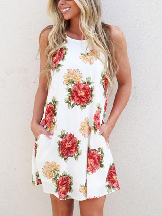Material:PolyesterNeckline:Round NeckSeason:Spring,Summer,Autumn,WinterSleeves:SleevelessPattern:Floral PrintStyle:Casual StyleLength:MiniFit:Loose FitOccasion:Vacation