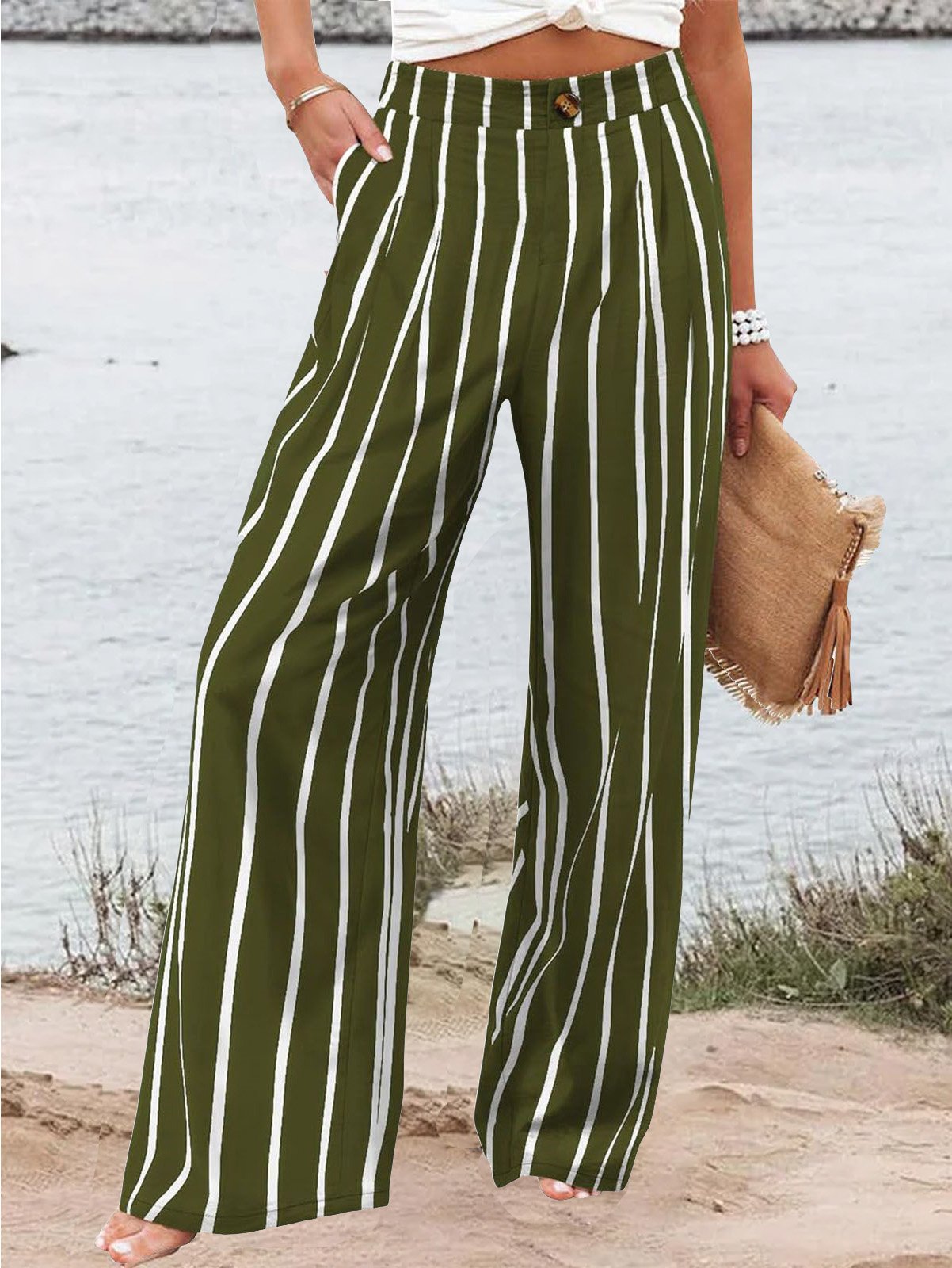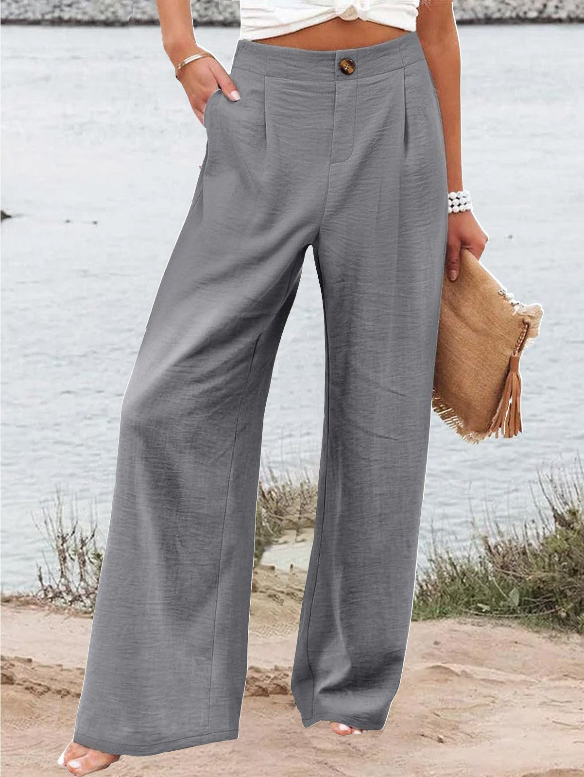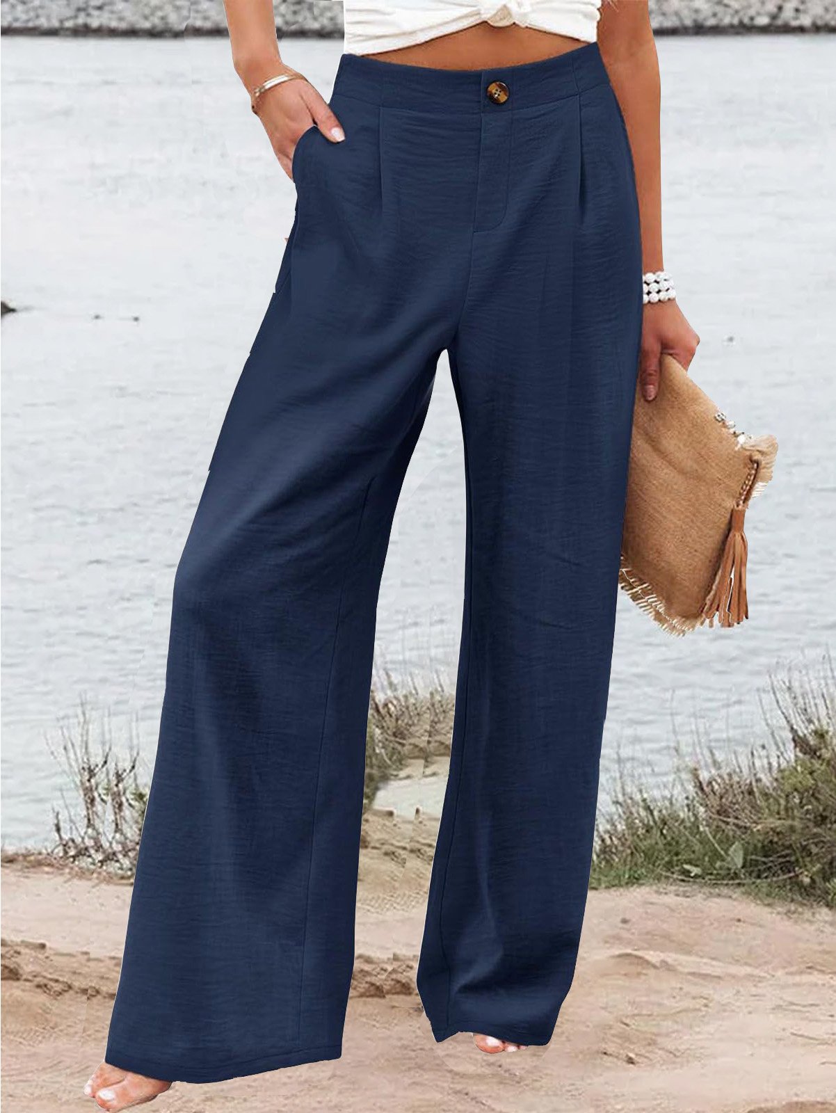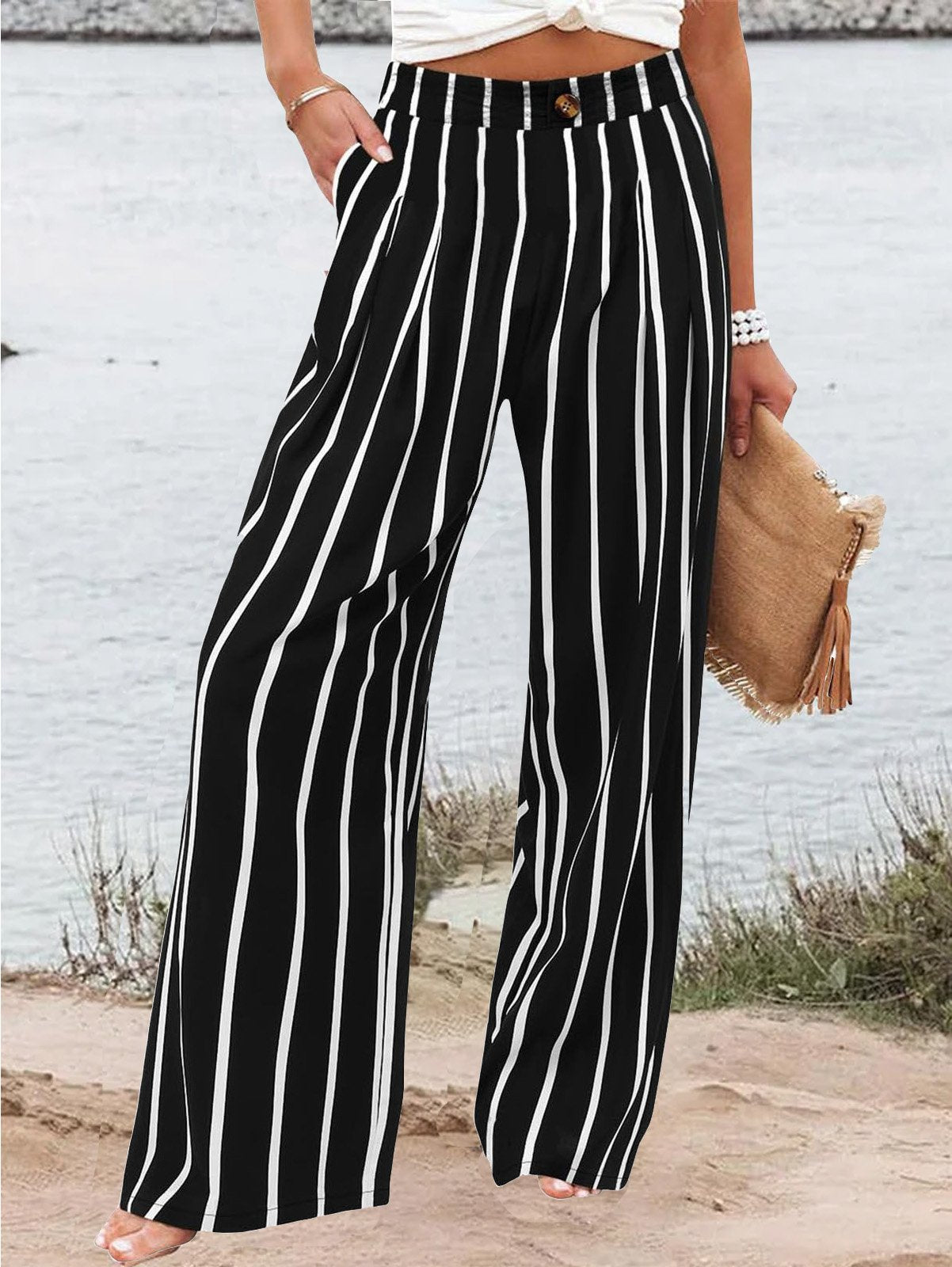 Fashion Floral Buckle Pocket Stitching Loose Long Pants