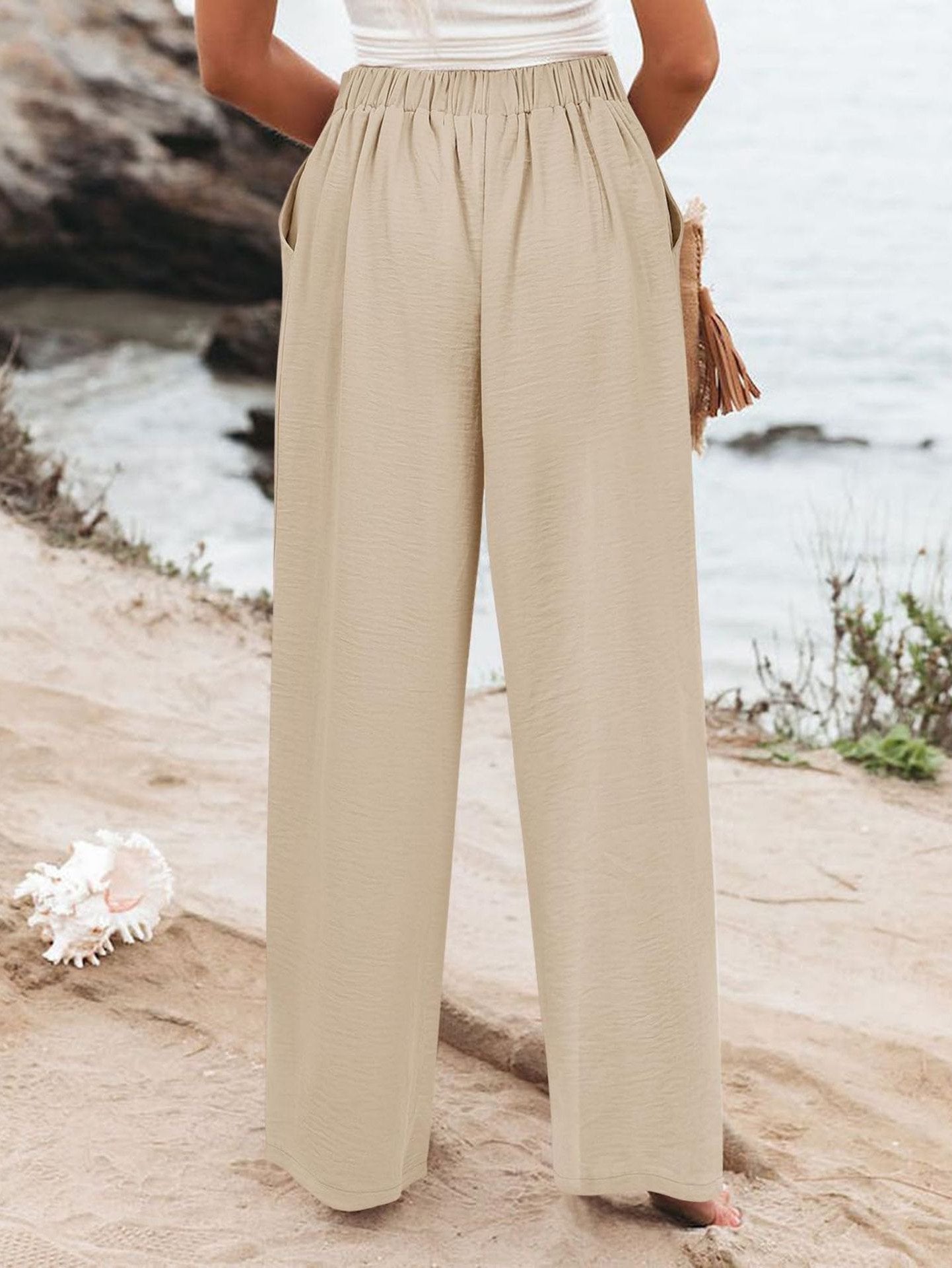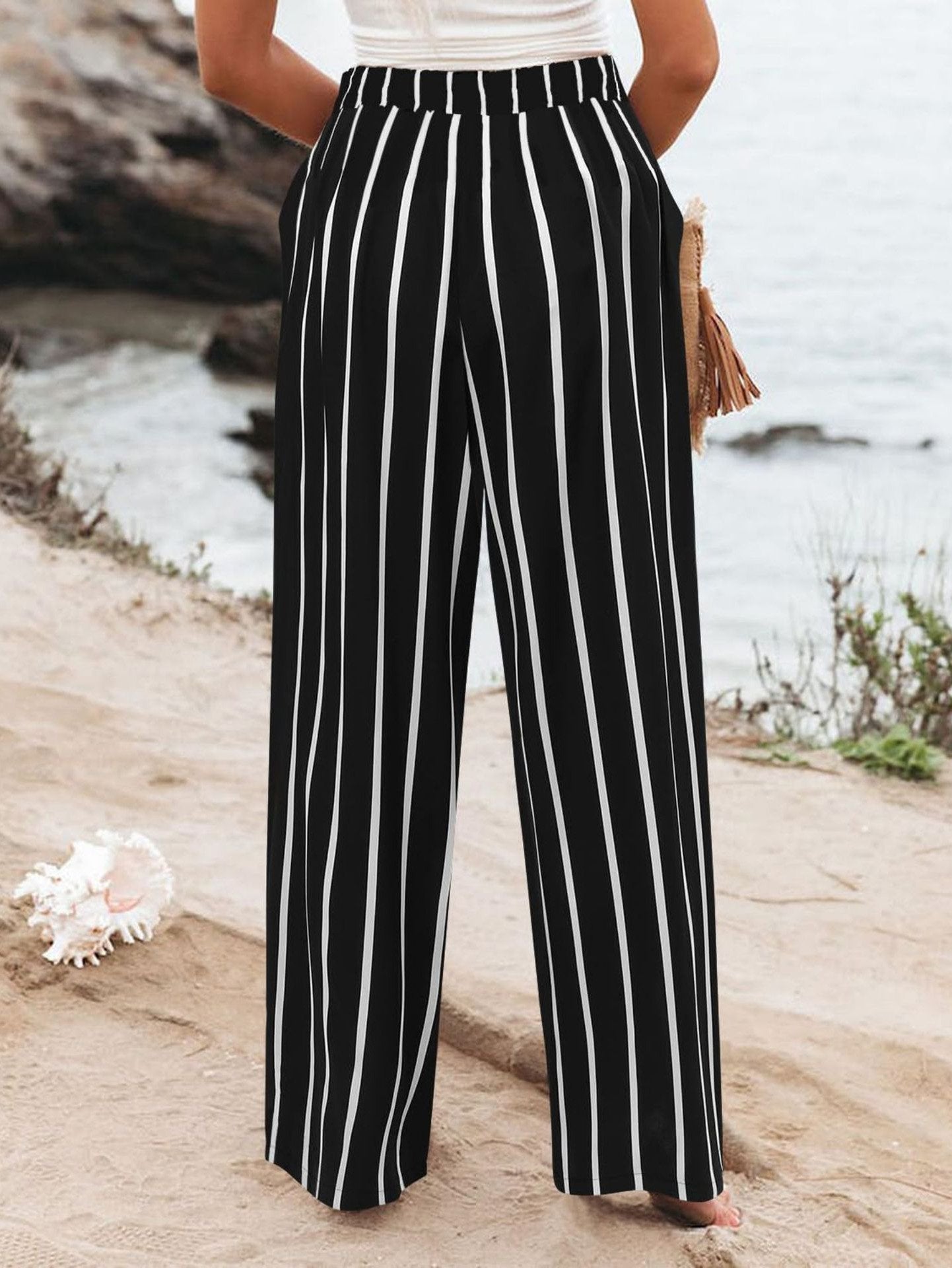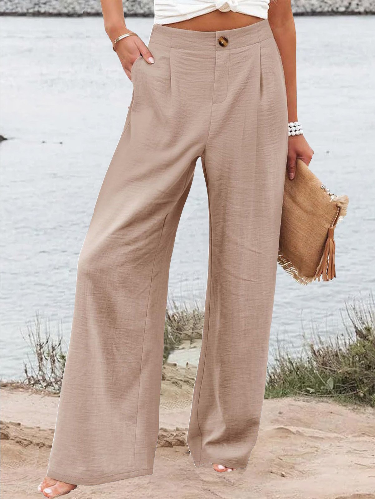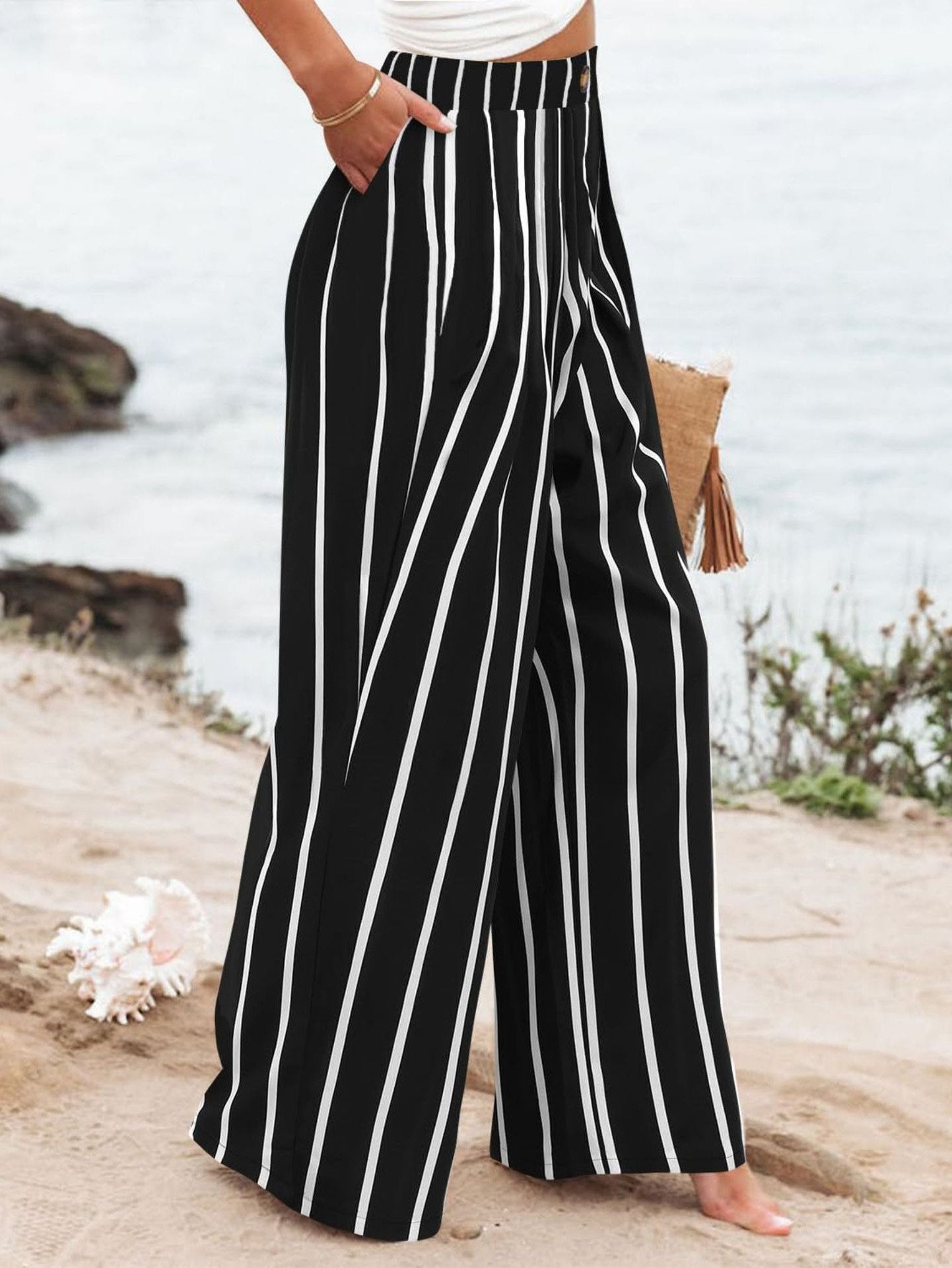 Fashion Floral Buckle Pocket Stitching Loose Long Pants