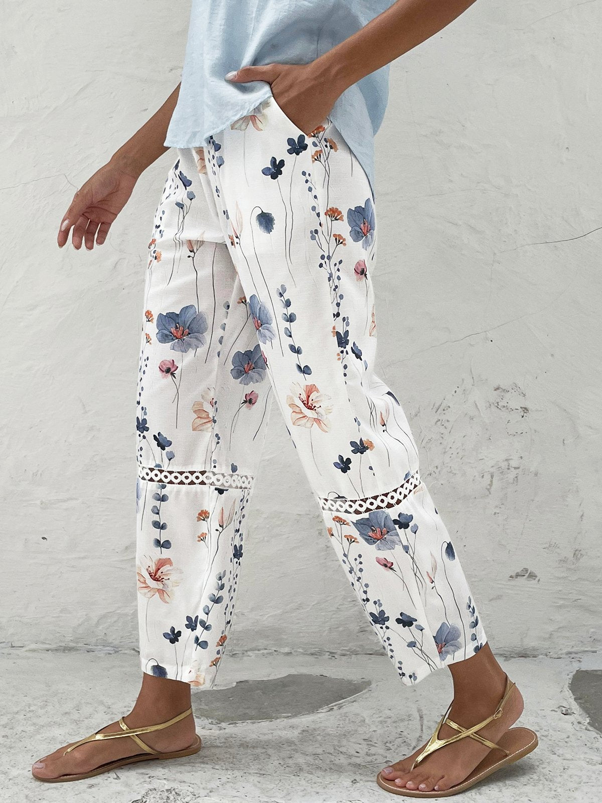 Fashion Floral Lace Loose Long Pants - White / S is backordered and will ship as soon as it is back in stock.