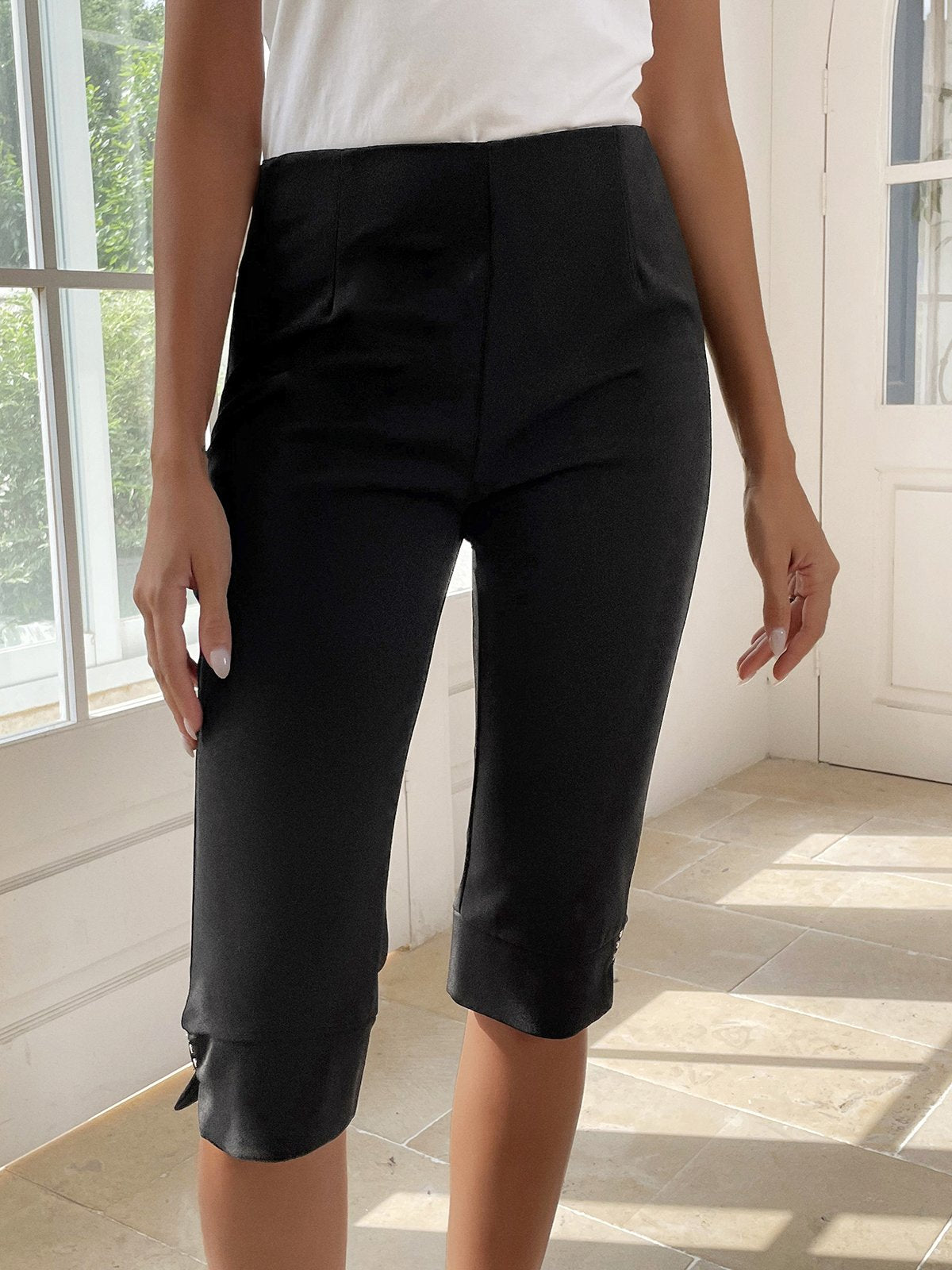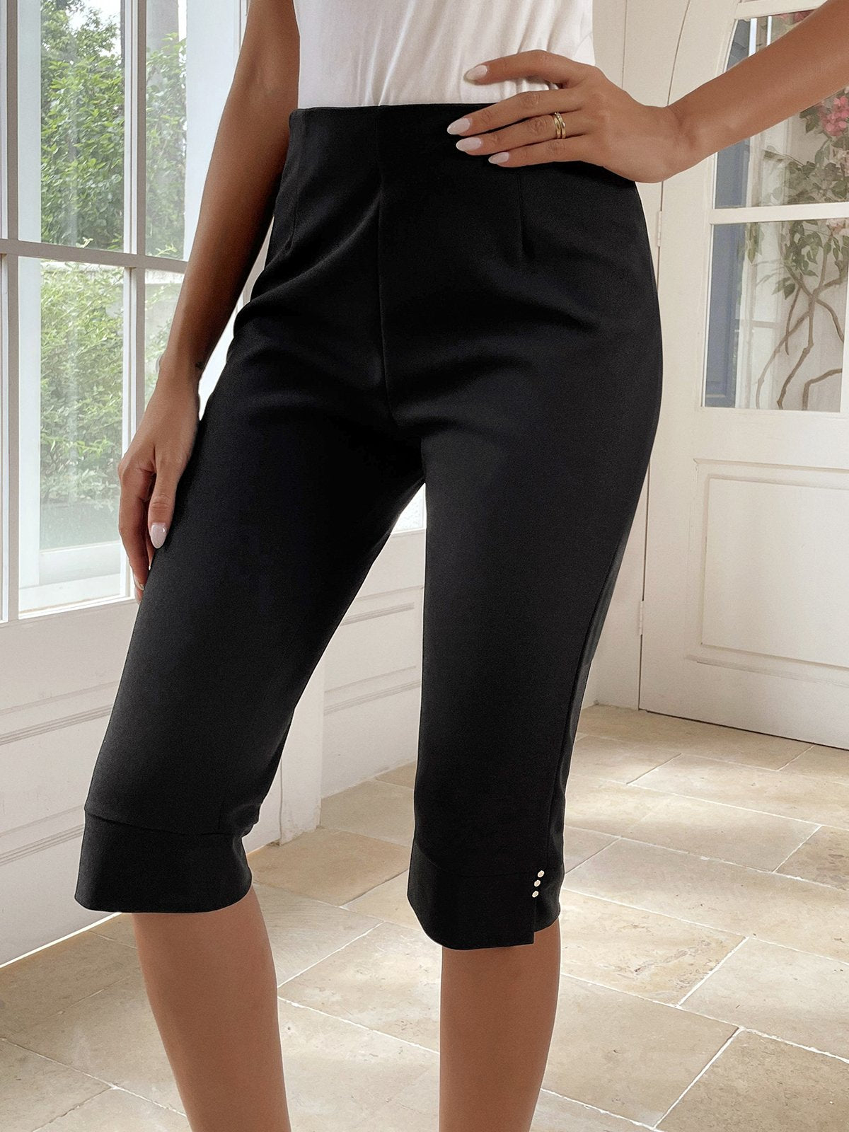Fashion Plain Buttoned Capris Pants - Black / S is backordered and will ship as soon as it is back in stock.