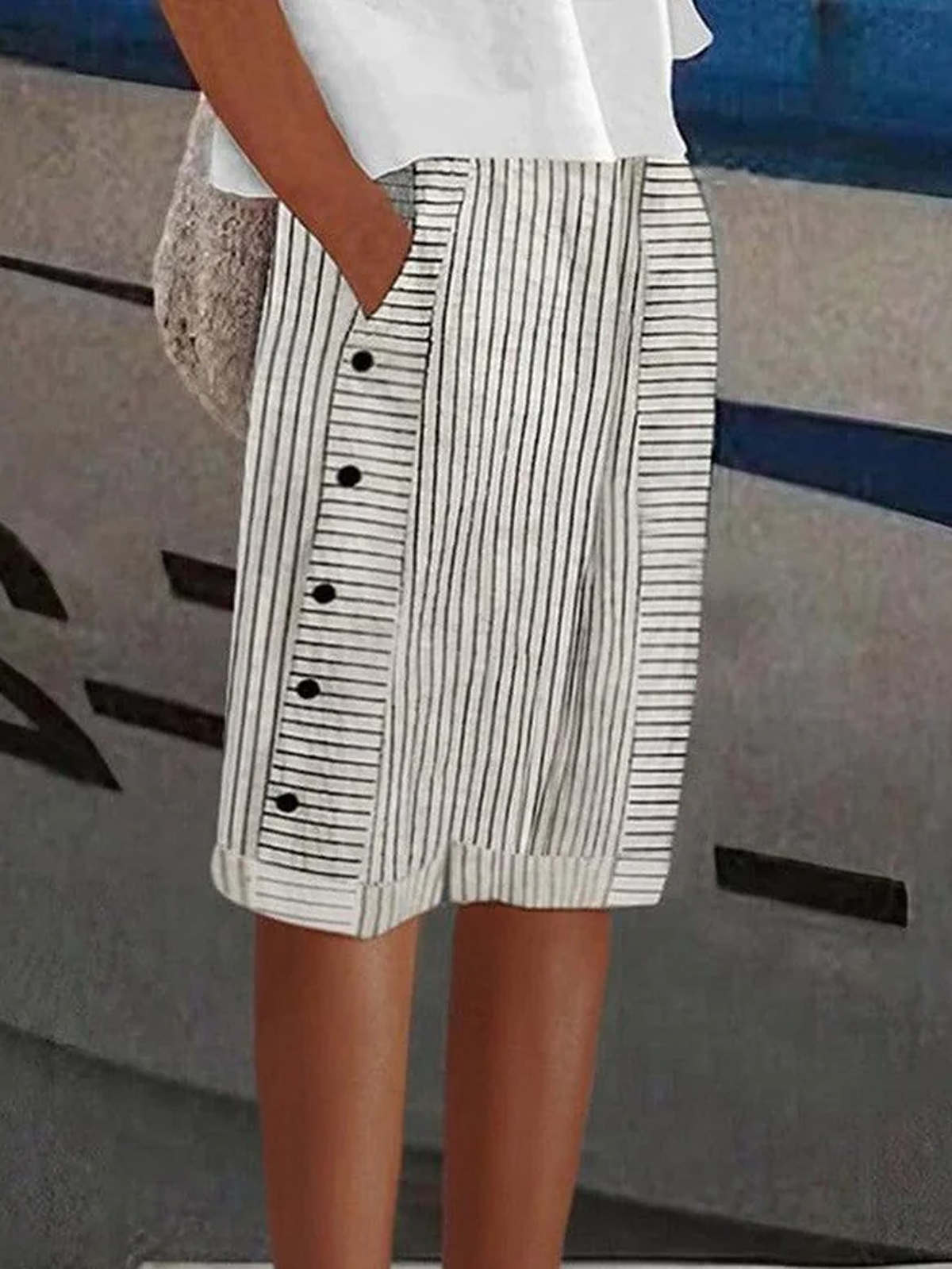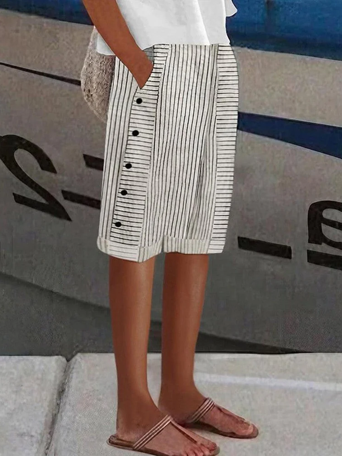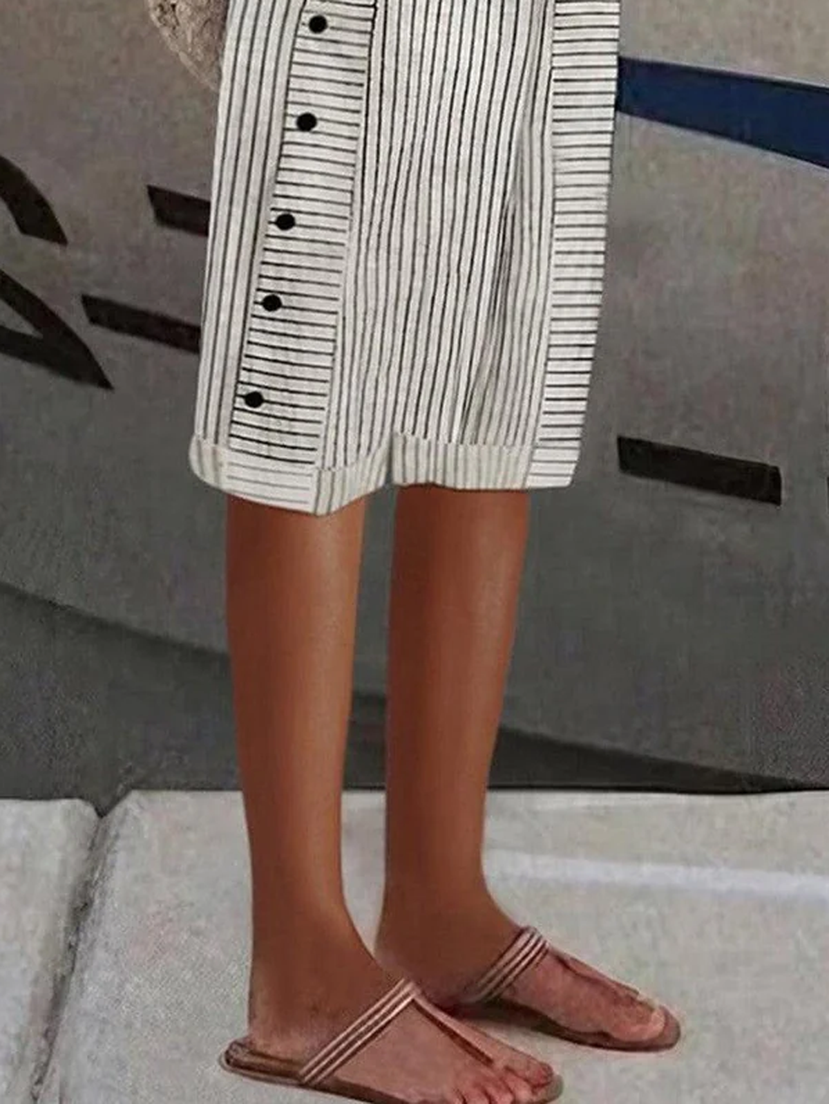 Fashion Striped Buckle Loose Fifth Pants - Black / S is backordered and will ship as soon as it is back in stock.