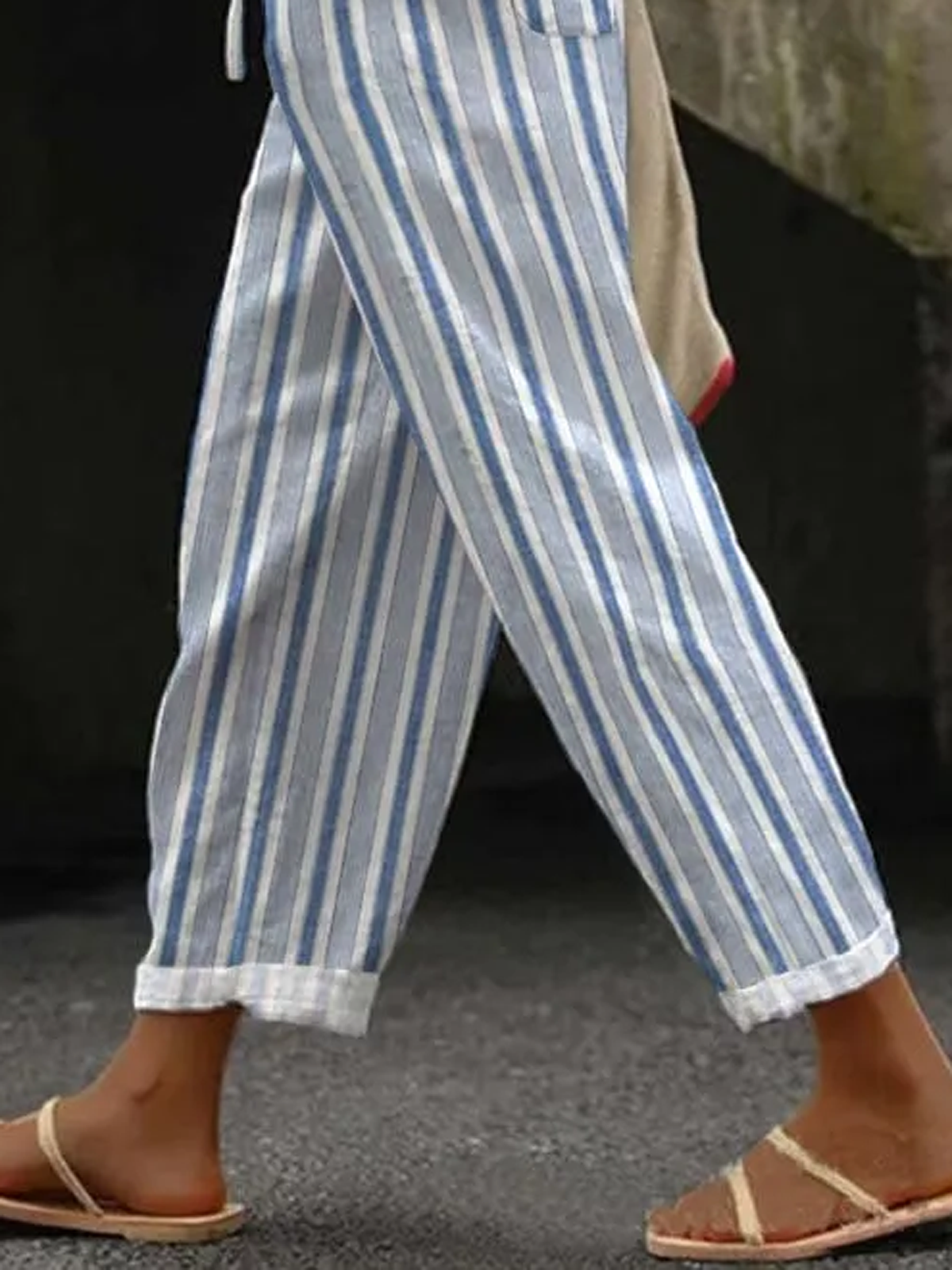 Fashion Striped Pocket Stitching Loose Long Pants - Blue / S is backordered and will ship as soon as it is back in stock.