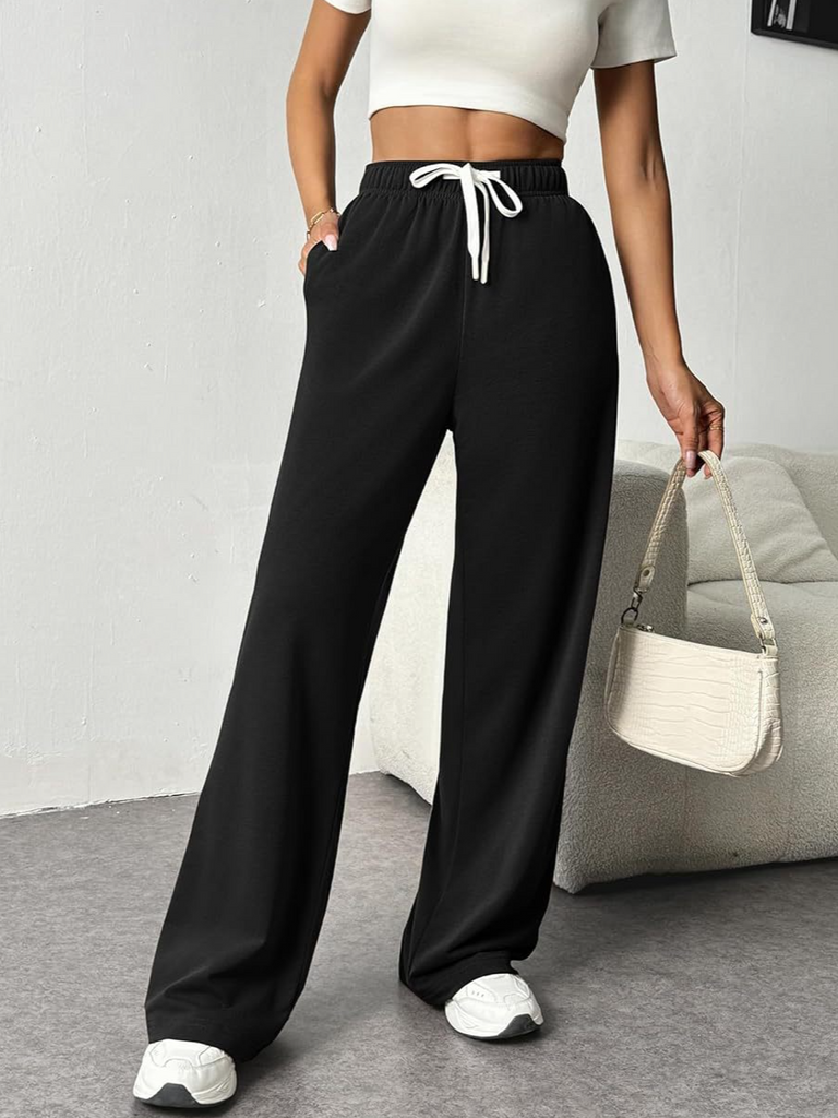 Fashion Plain Pocket Stitching Loose Ankle Pants