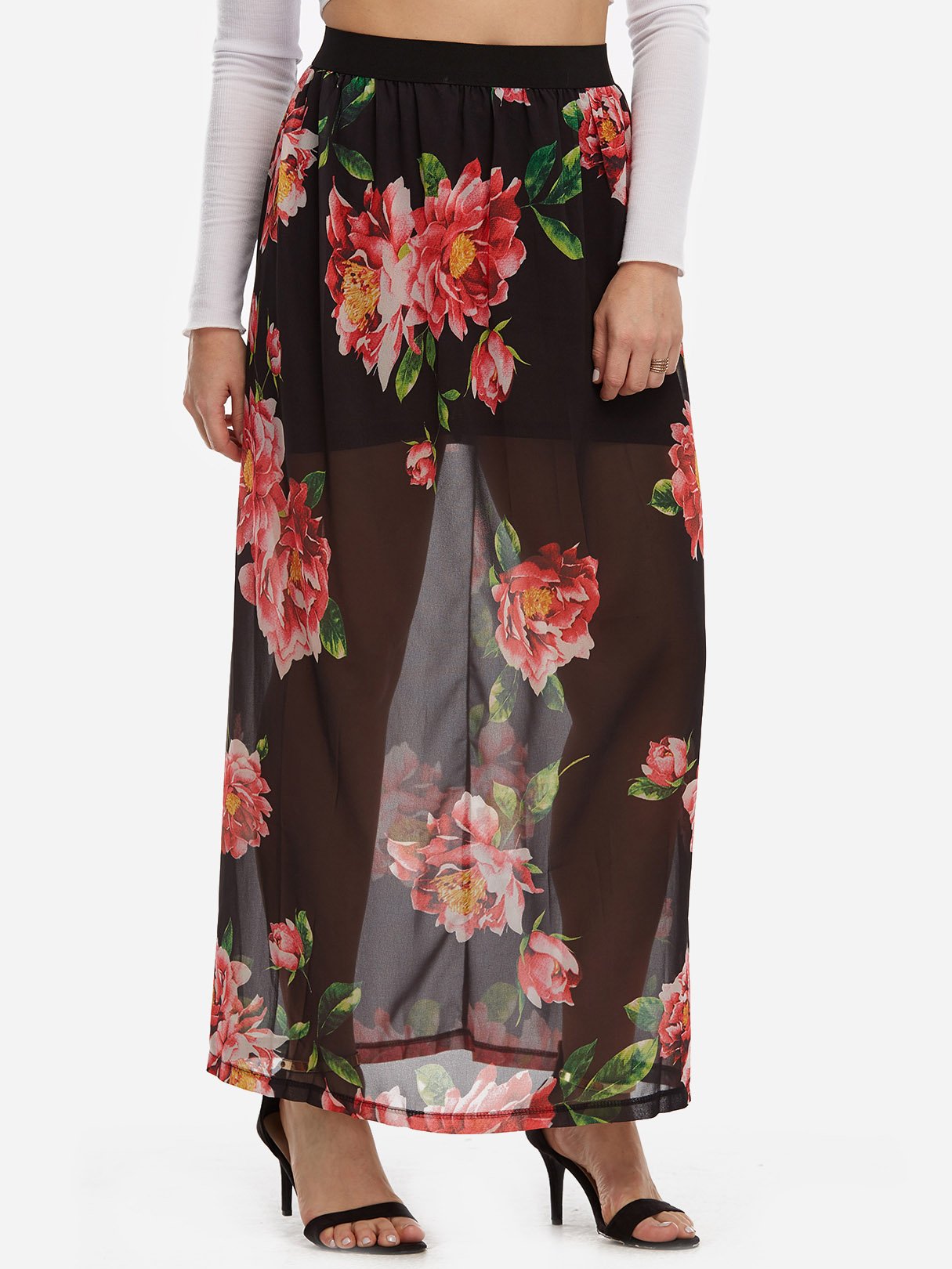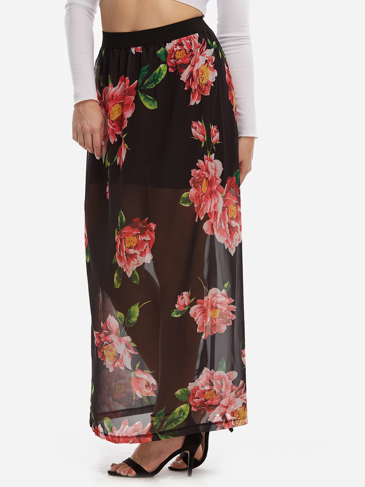 Material:Cotton,PolyesterSeason:Spring,Summer,AutumnPattern:Floral PrintDetail:Elastic Strap Back DetailLength:LongFit:Loose Fit