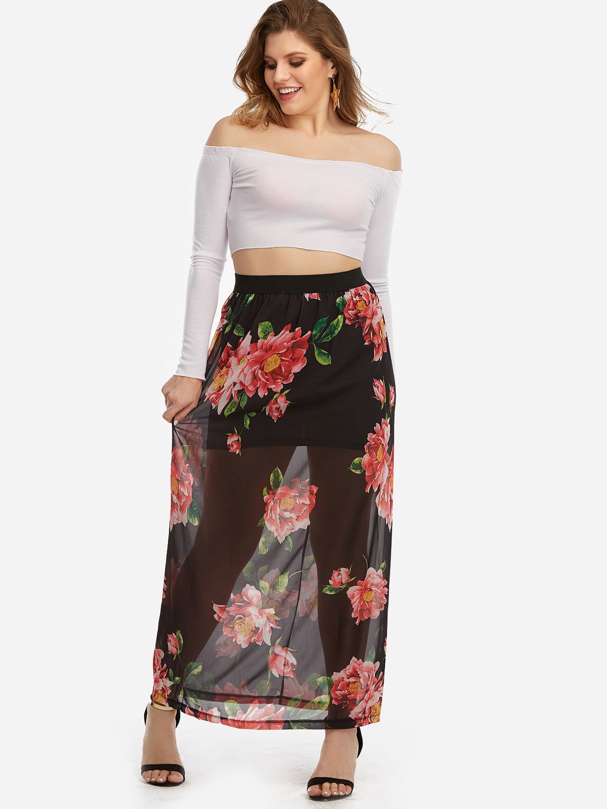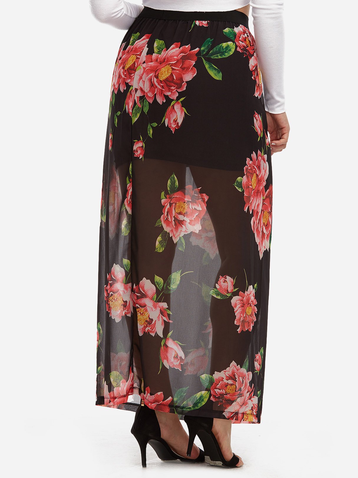 Floral Print Black Plus Size Bottoms - Black / XL is backordered and will ship as soon as it is back in stock.