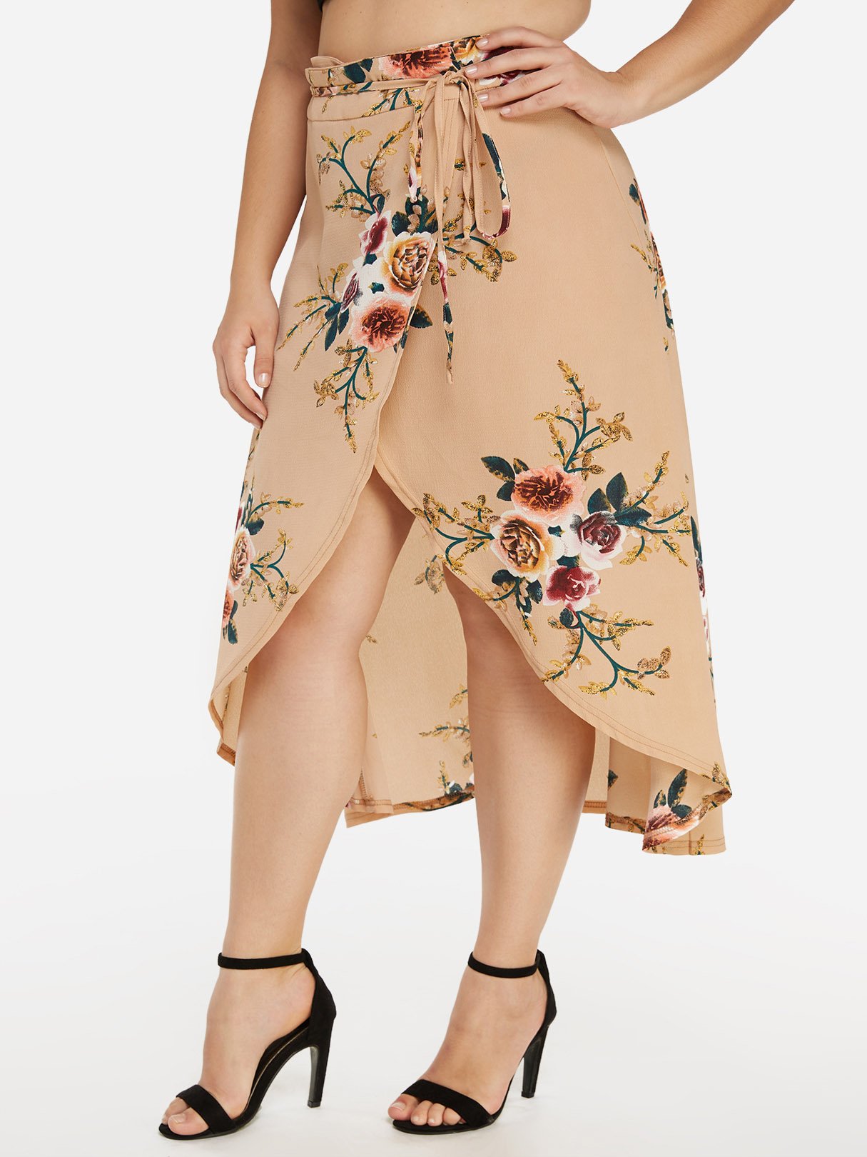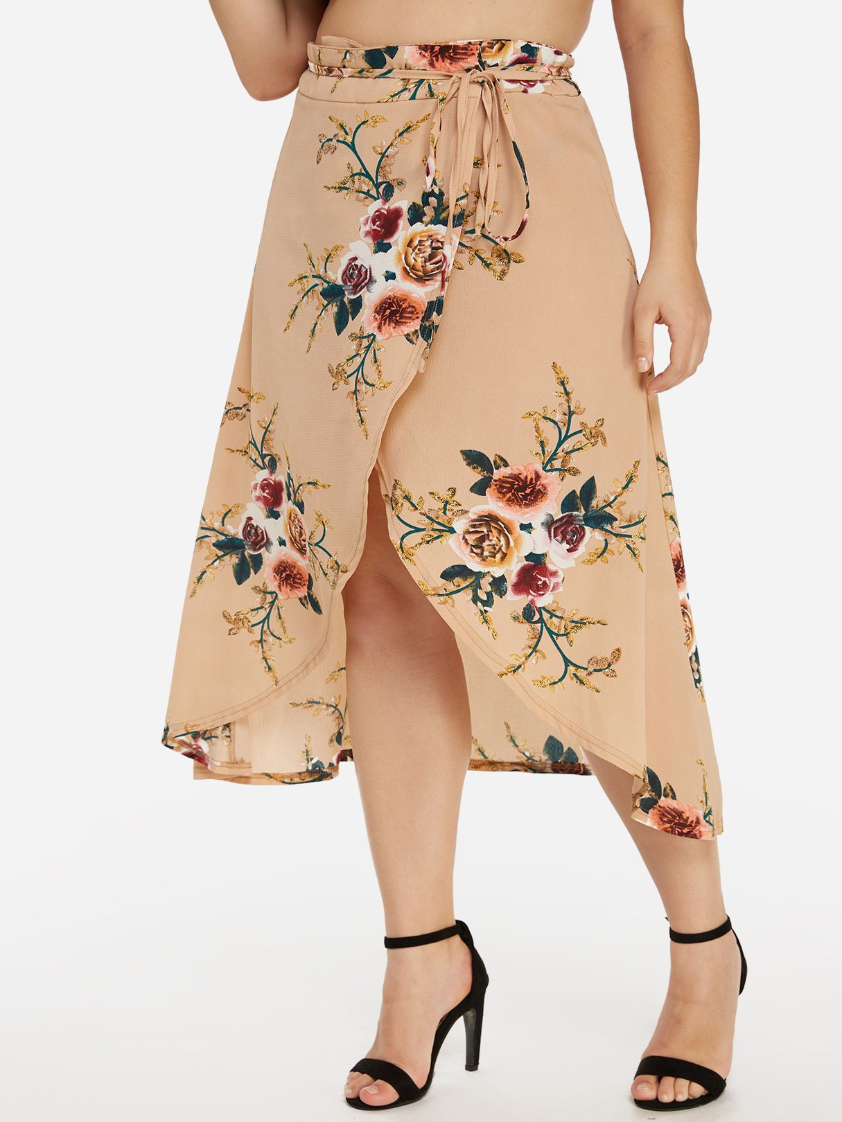 Material:Polyester,ElastaneSeason:Spring,Summer,AutumnPattern:Floral PrintStyle:Casual StyleDetail:Lace-Up Design,Slit DesignHem Design:Irregular Hem,Slit HemLength:LongFit:Regular Fit