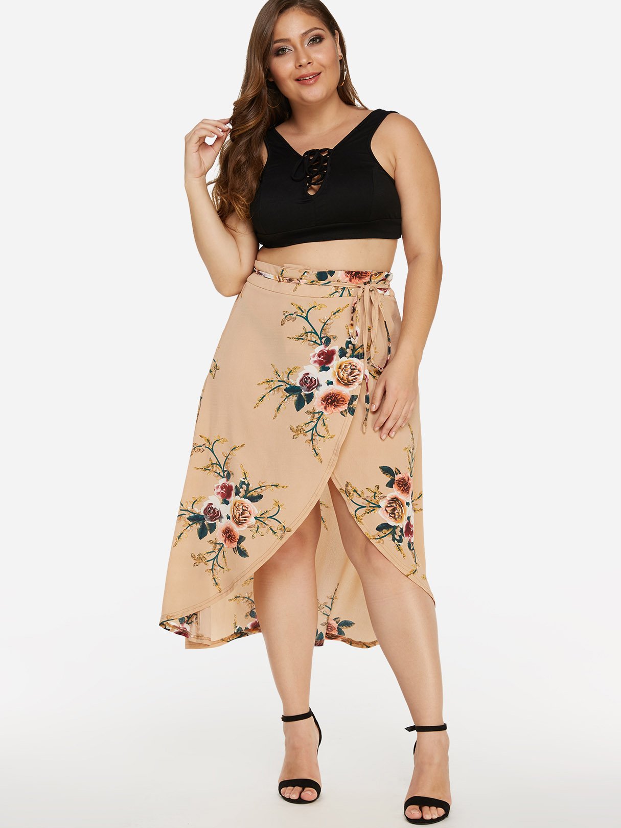 Floral Print Lace-Up Slit Hem Plus Size Bottoms - Floral / XL is backordered and will ship as soon as it is back in stock.