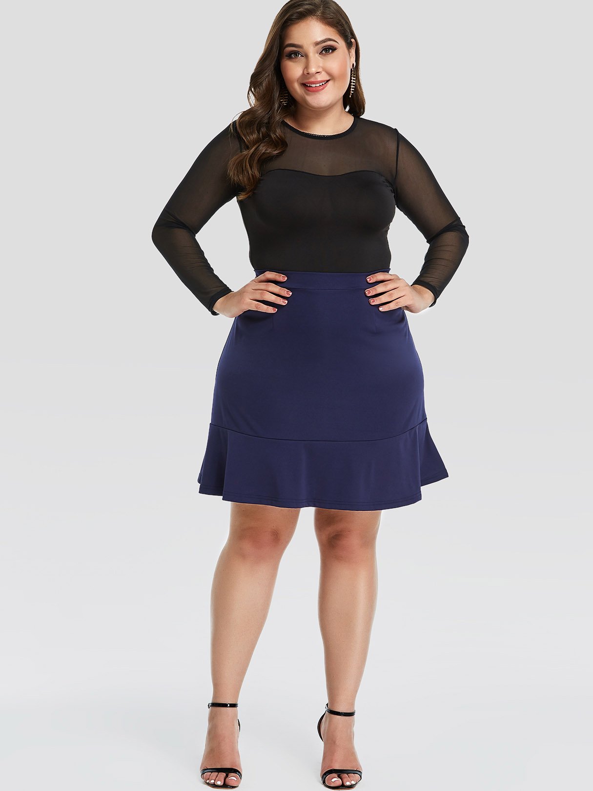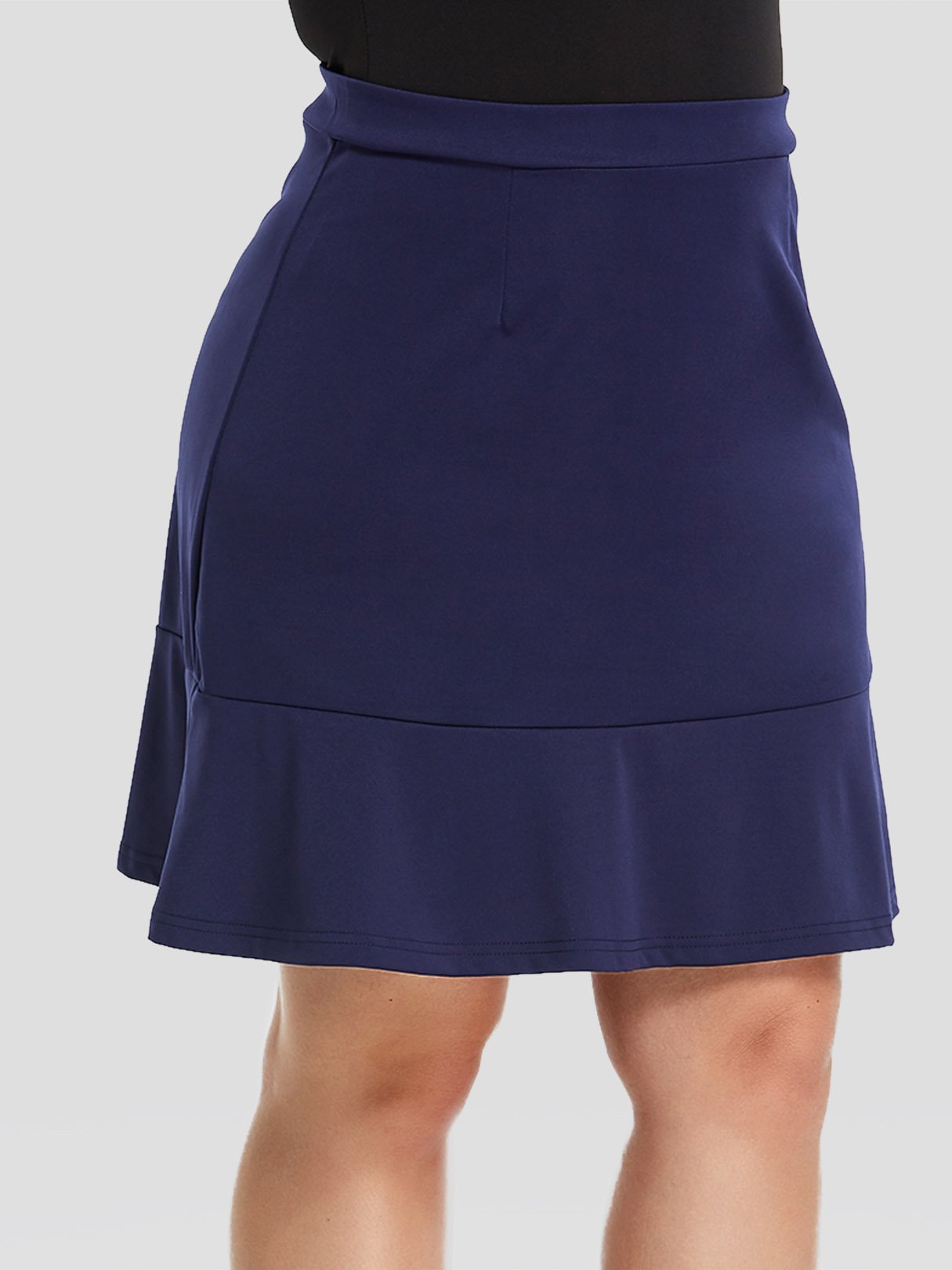 Plain Flounced Hem Blue Plus Size Bottoms - Blue / XL is backordered and will ship as soon as it is back in stock.