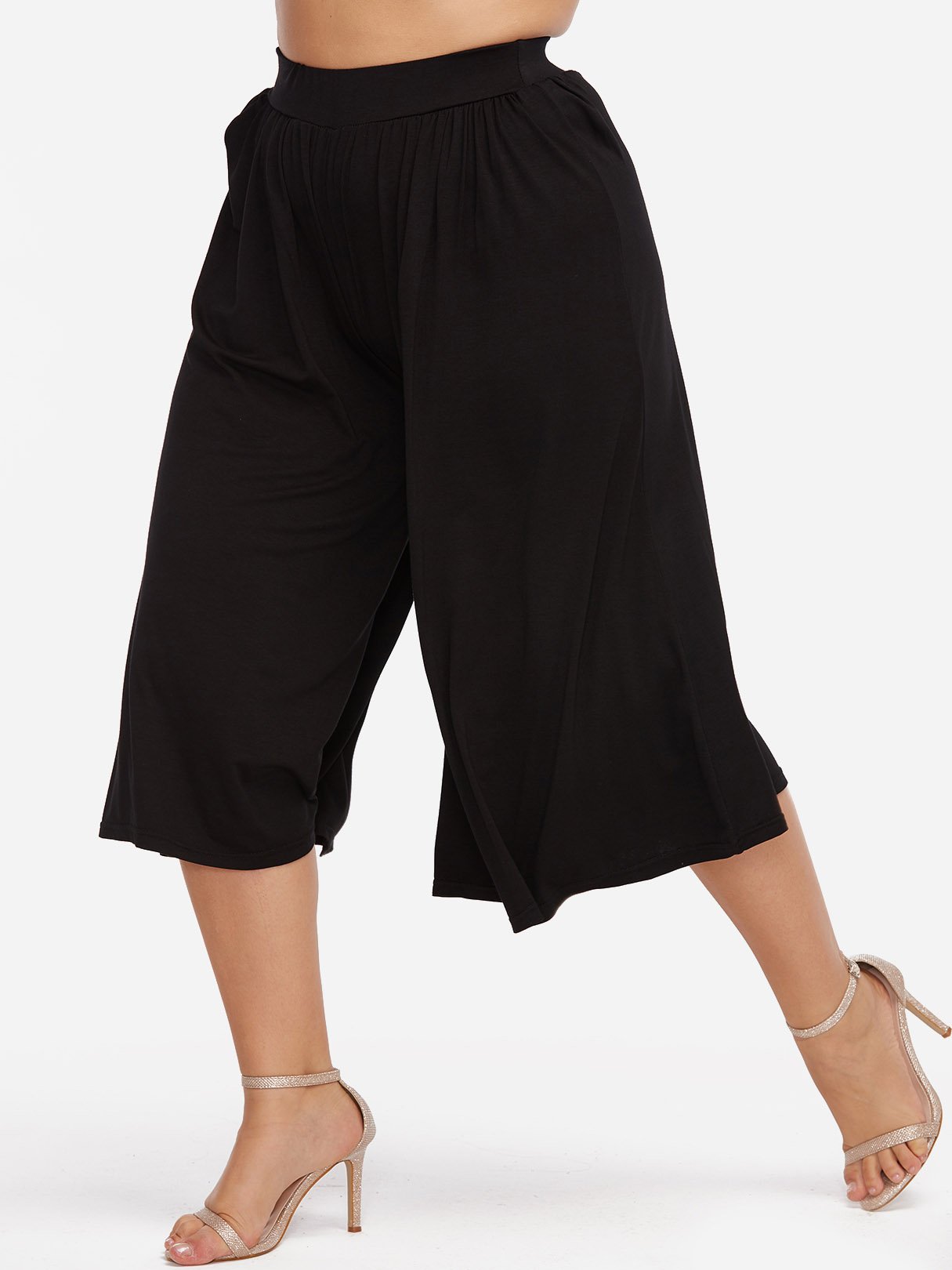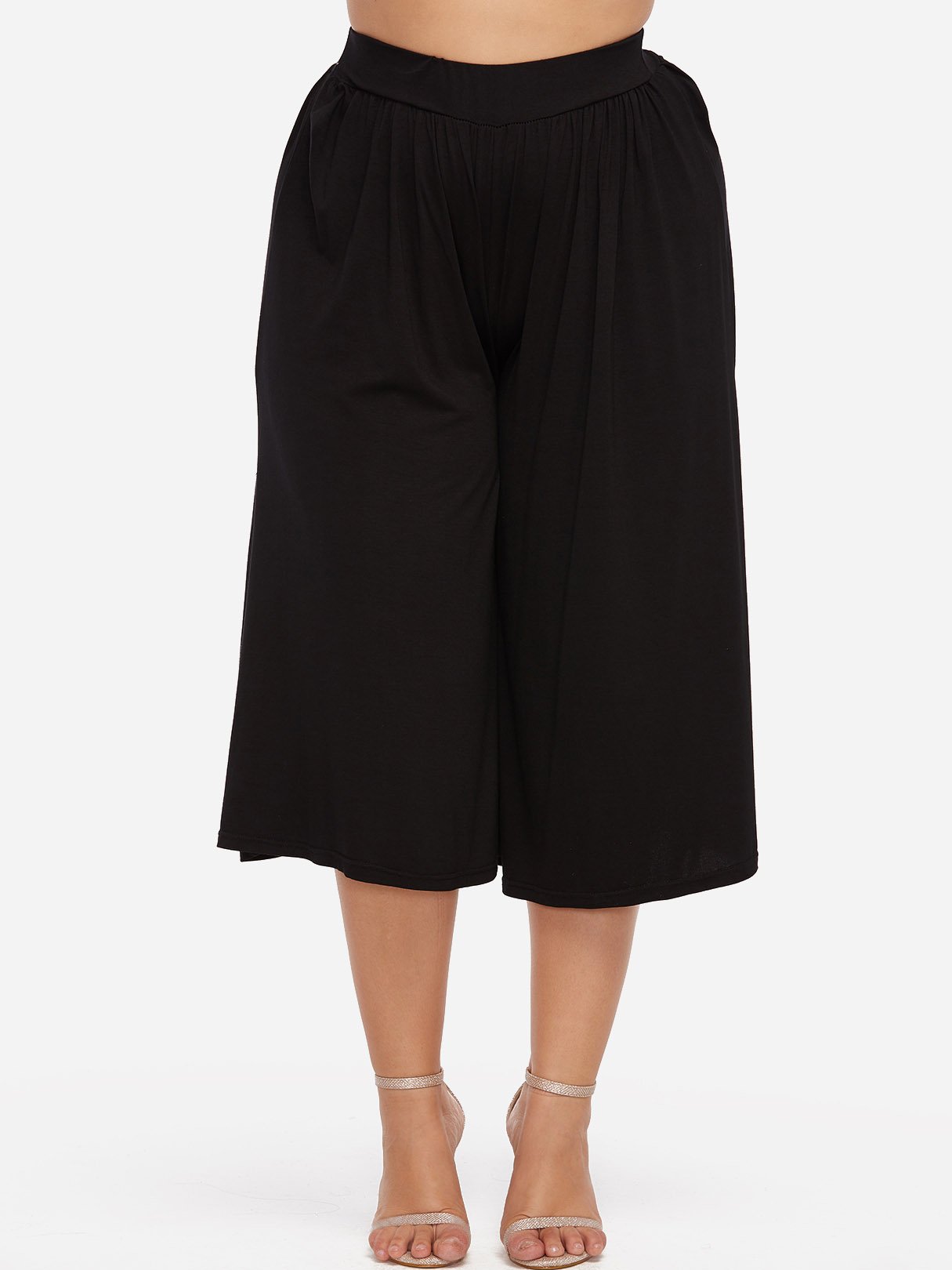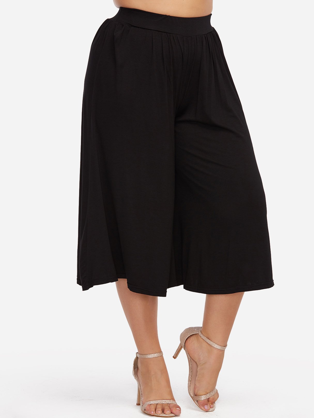 Plain Pleated Plus Size Wide Leg Pants - Black / XL is backordered and will ship as soon as it is back in stock.