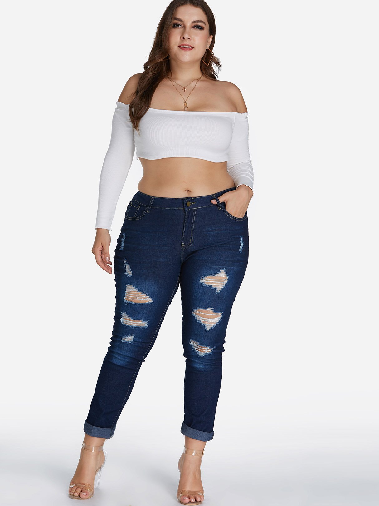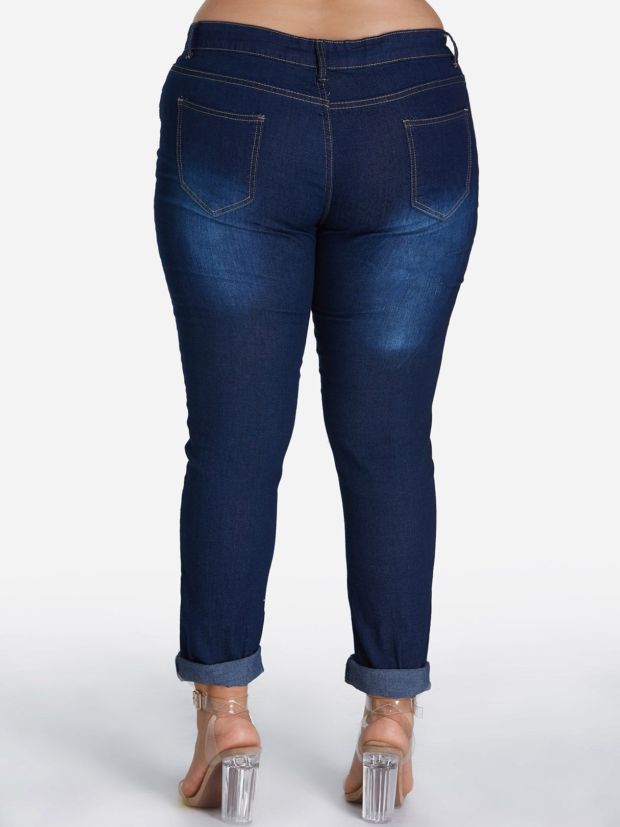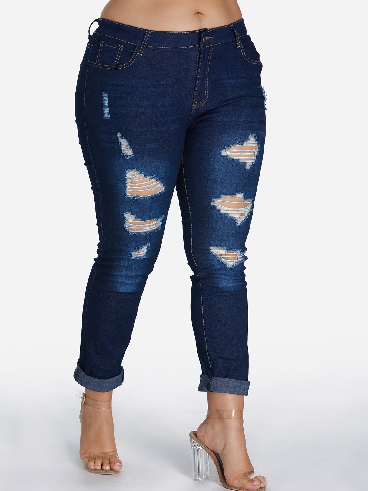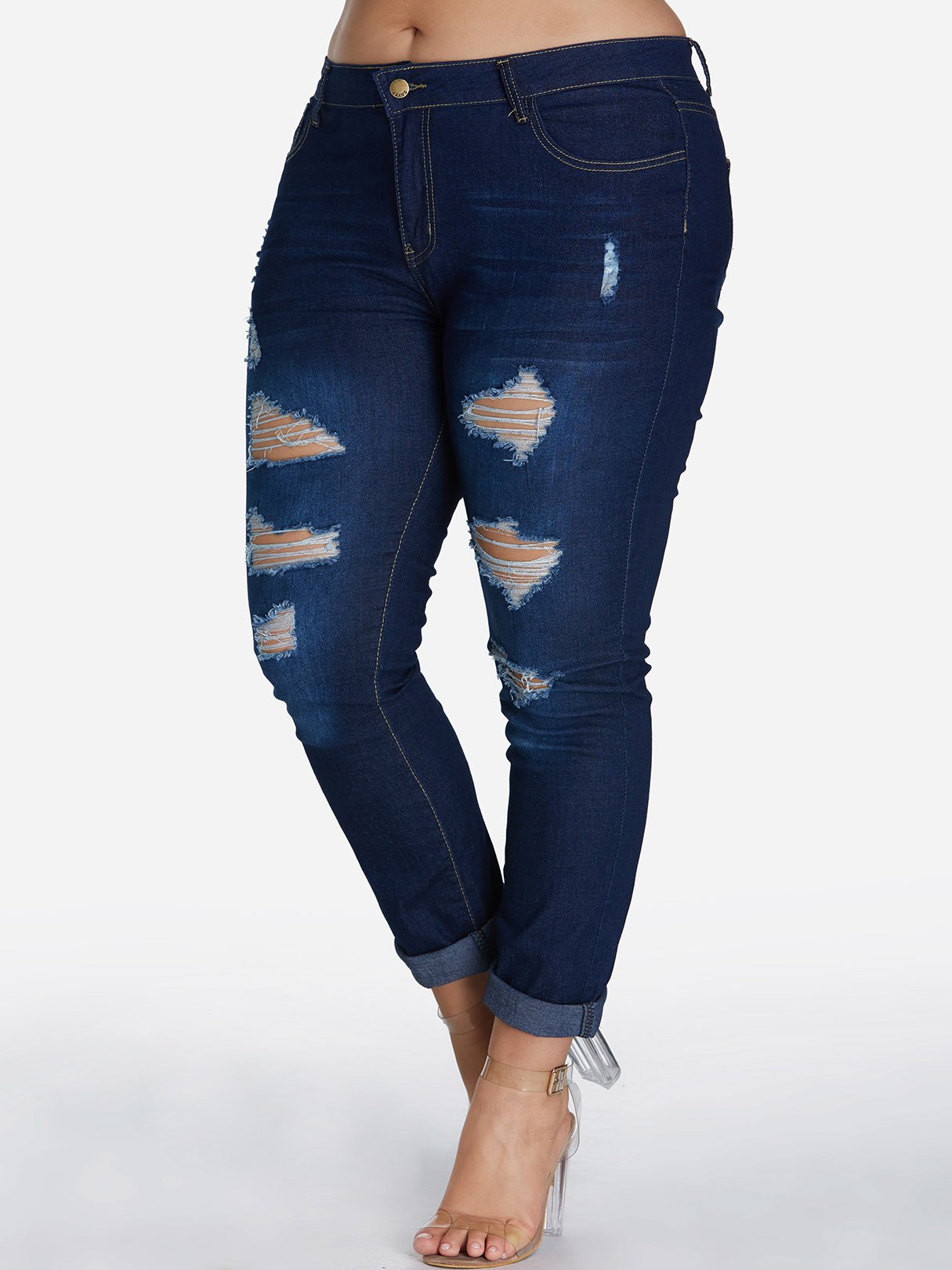 Plain Random Ripped Dark Blue Plus Size Bottoms - Dark Blue / XL is backordered and will ship as soon as it is back in stock.