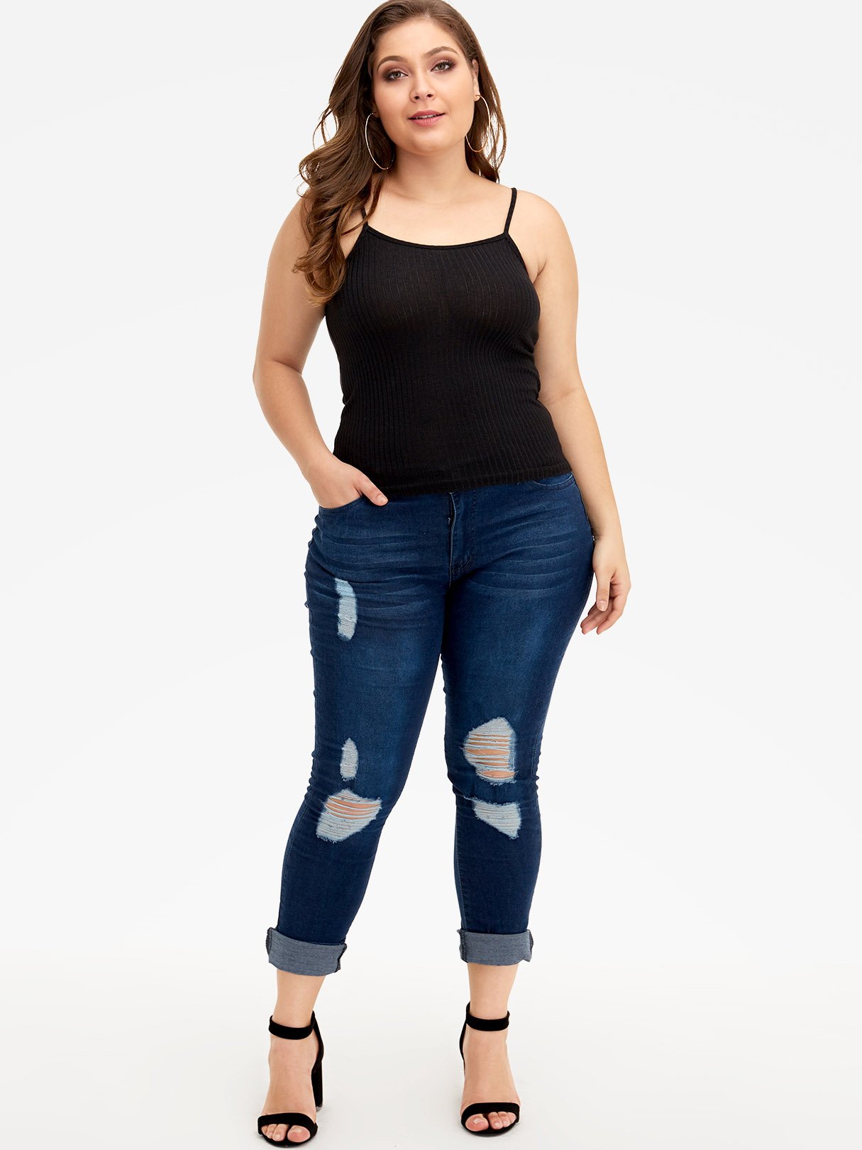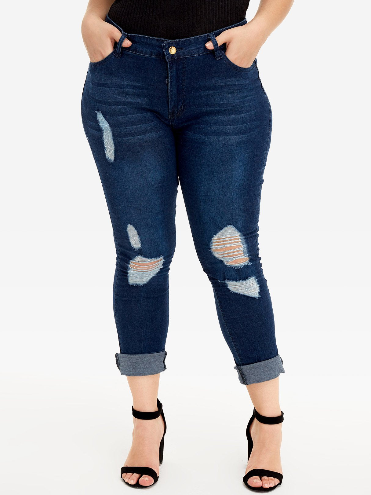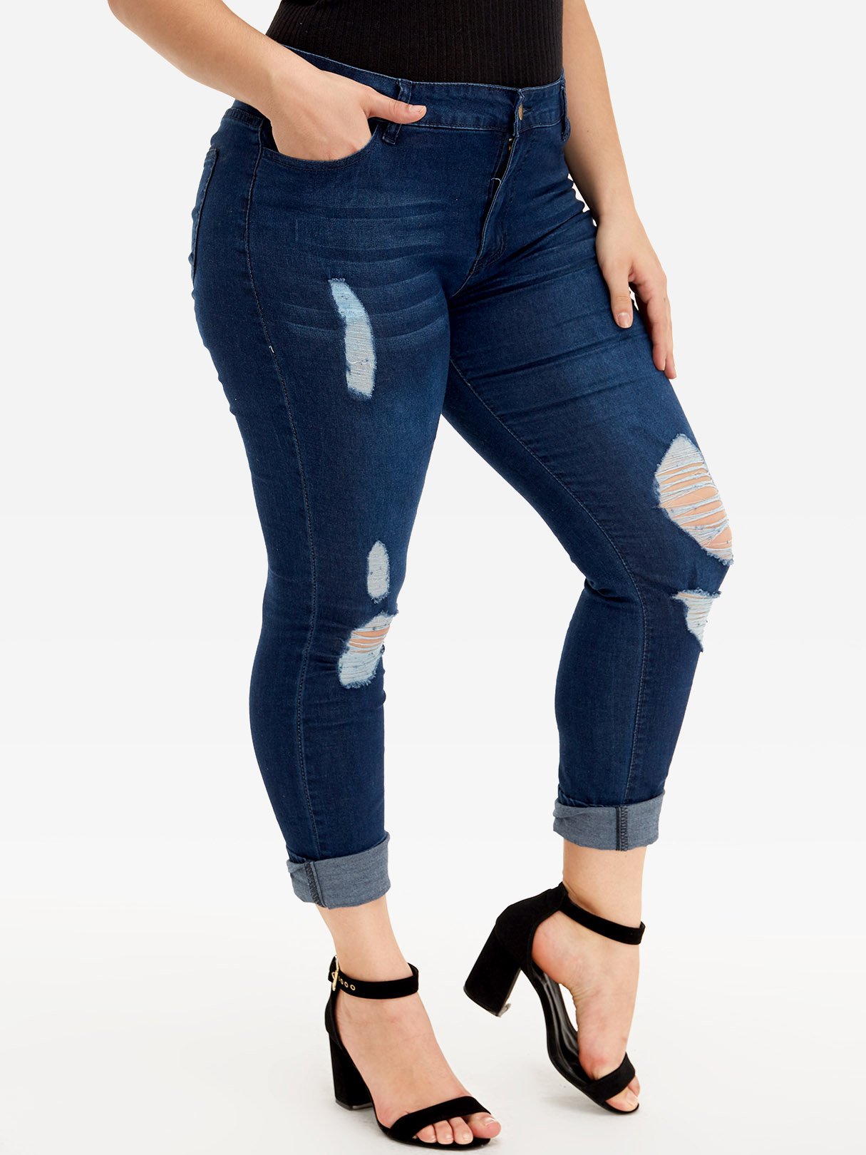 Plain Random Ripped Navy Plus Size Bottoms - Navy / XL is backordered and will ship as soon as it is back in stock.
