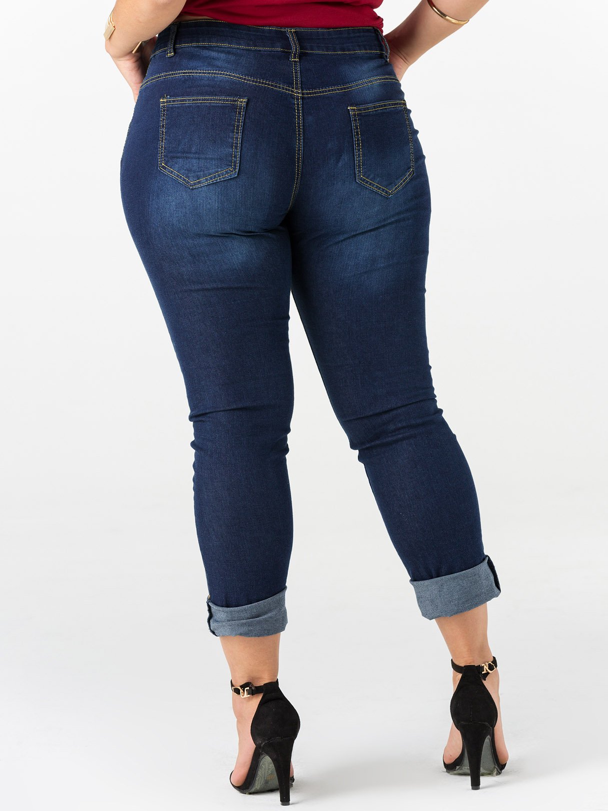 Plain Zip Back Bodycon Dark Blue Plus Size Bottoms - Dark Blue / XL is backordered and will ship as soon as it is back in stock.