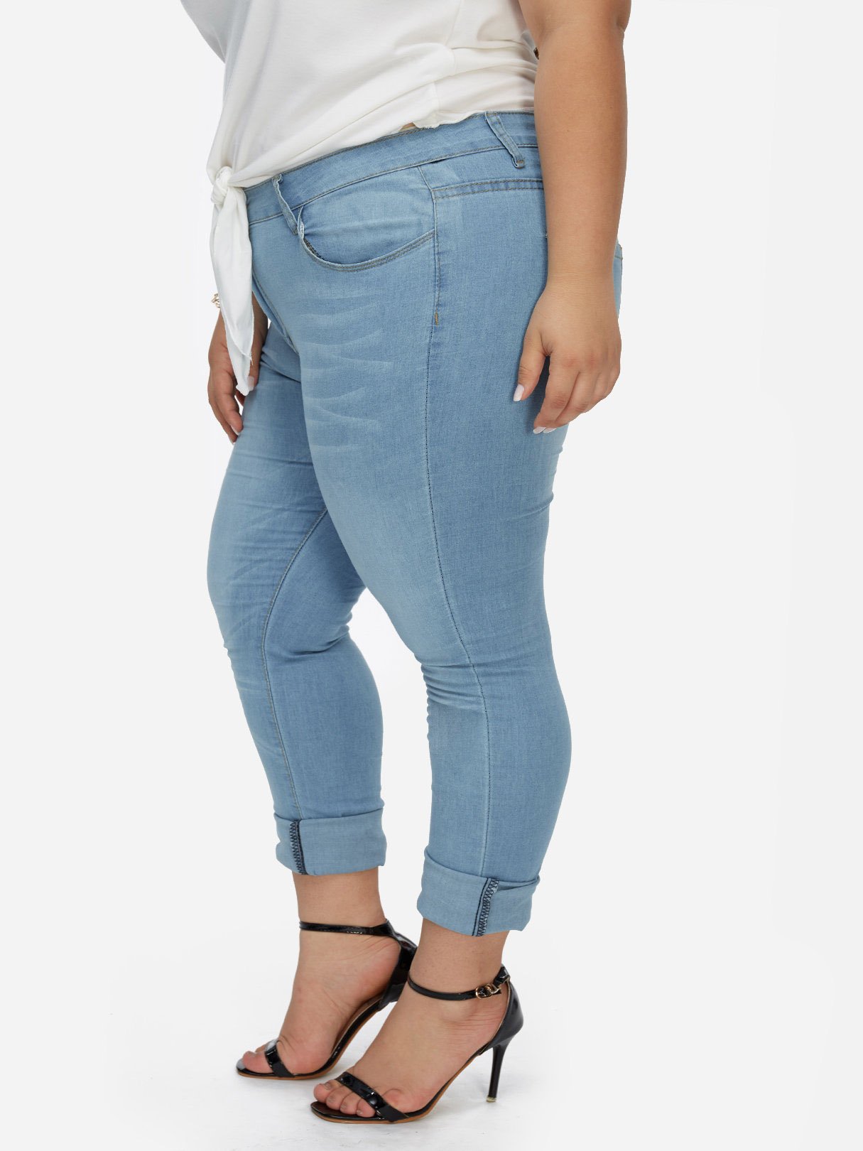 Plain Zip Back Sky Blue Plus Size Bottoms - Sky Blue / XL is backordered and will ship as soon as it is back in stock.