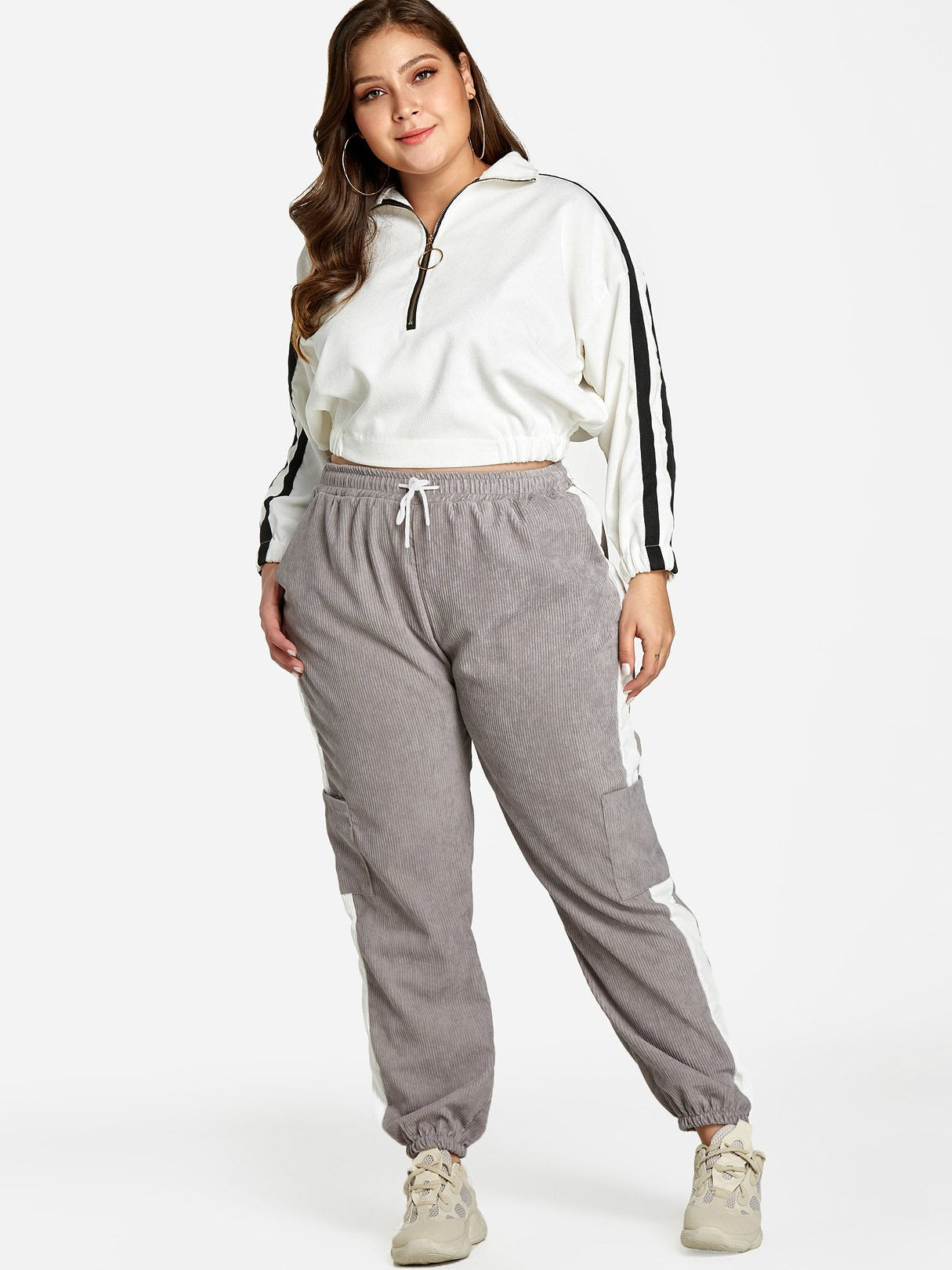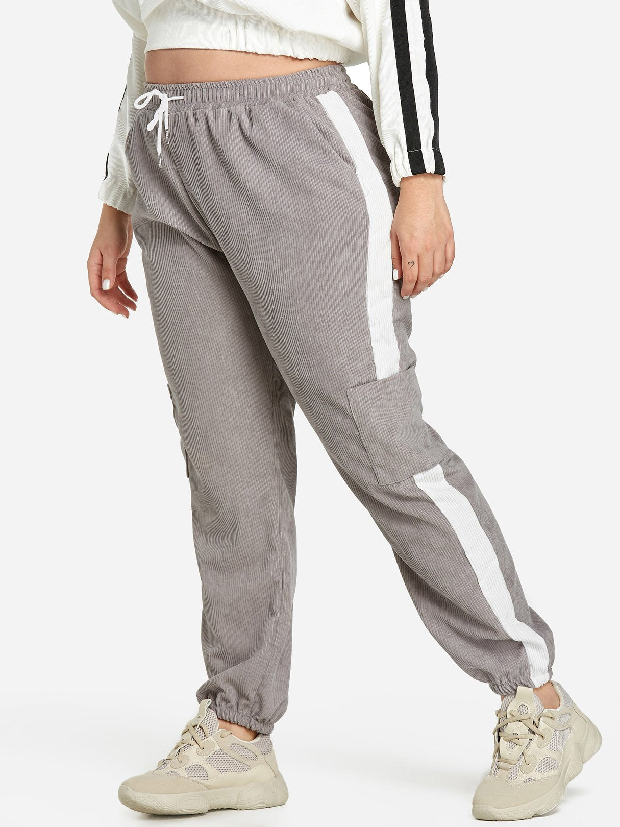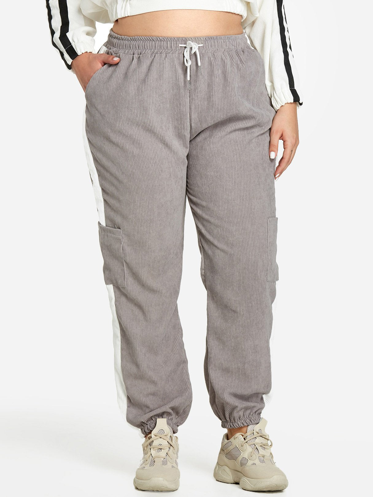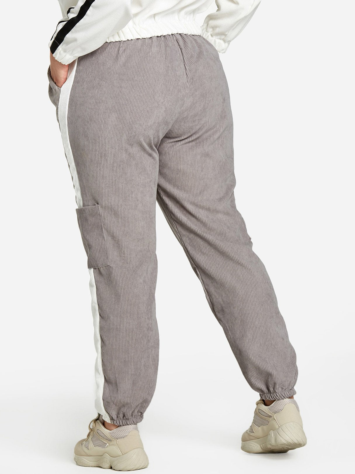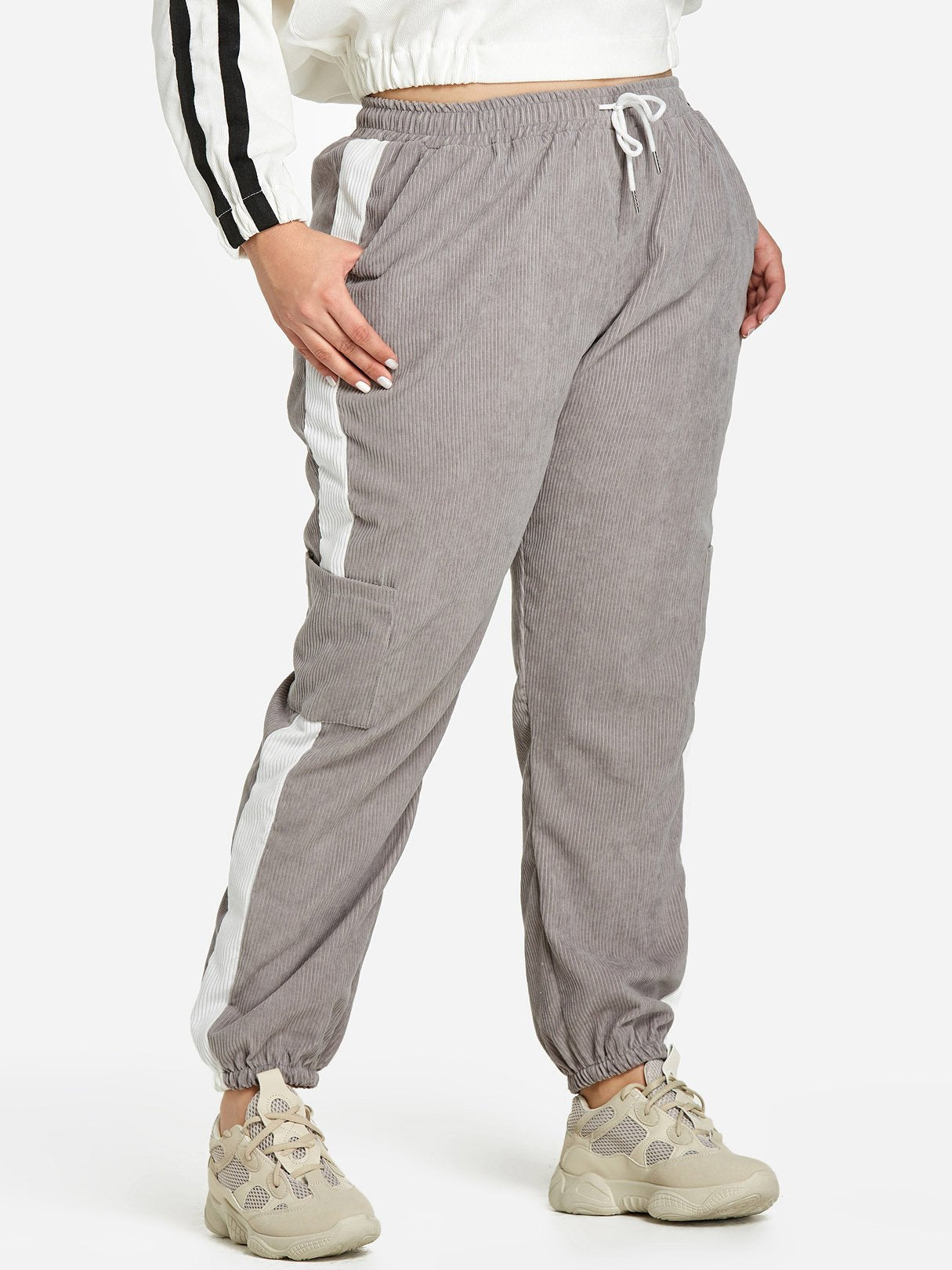 Plus Size Corduroy Drawstring Pocket Pants - Grey / XL is backordered and will ship as soon as it is back in stock.