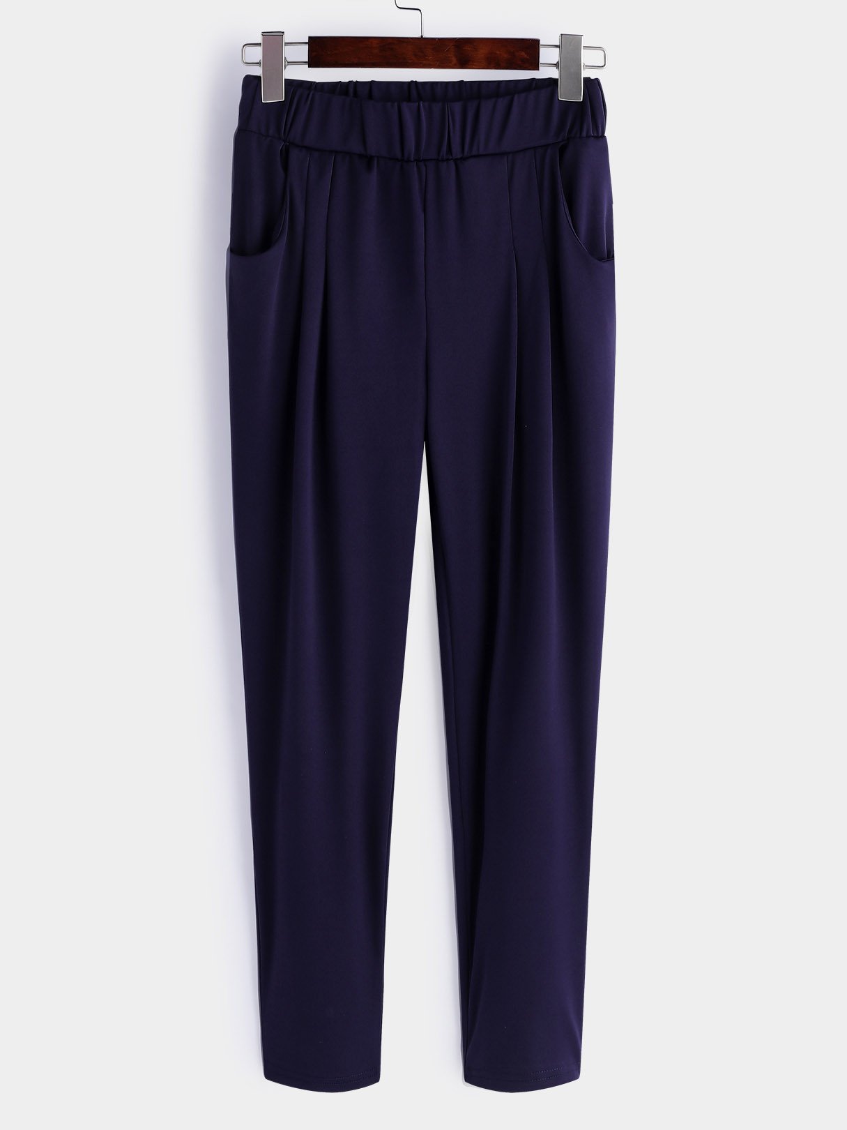 Plus Size Pockets Design Stretch Waistband Pants - Blue / M is backordered and will ship as soon as it is back in stock.