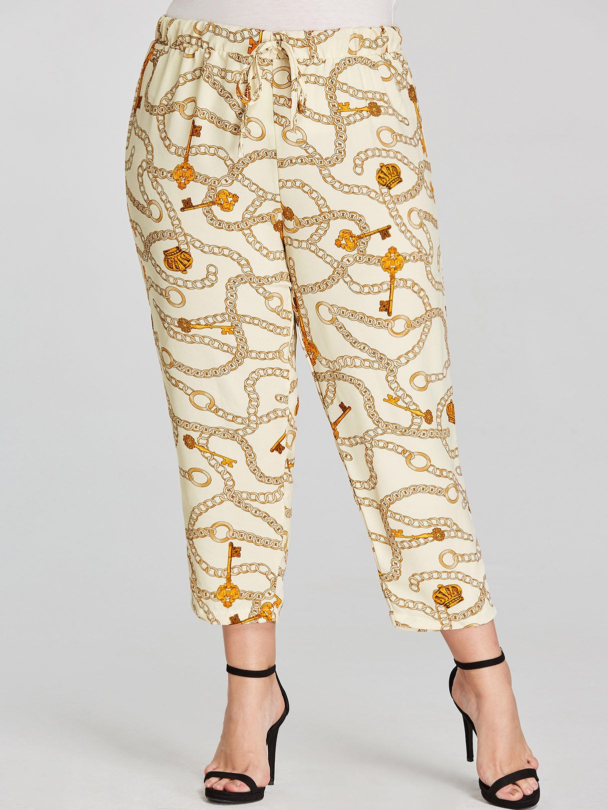 Material:Polyester,OtherSeason:Spring,SummerPattern:Scarf PrintWaist Design:Drawstring WaistFit:Regular Fit